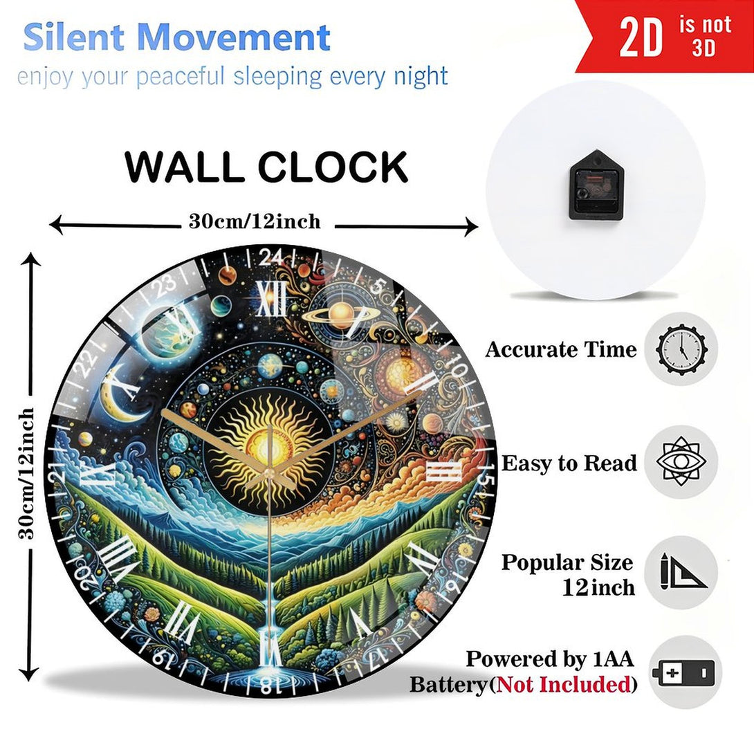 🕚[Silent Ticking Wall Clock] This glass wall clock features a silent ticking mechanism that accurately tells the time, allowing you to enjoy a peaceful rest. The precise quartz movement ensures accurate timekeeping. 🕚[High-Definition Printing] Utilizing UV high-definition printing technology, this clock boasts rich colors, delicate patterns, and a resistance to fading.