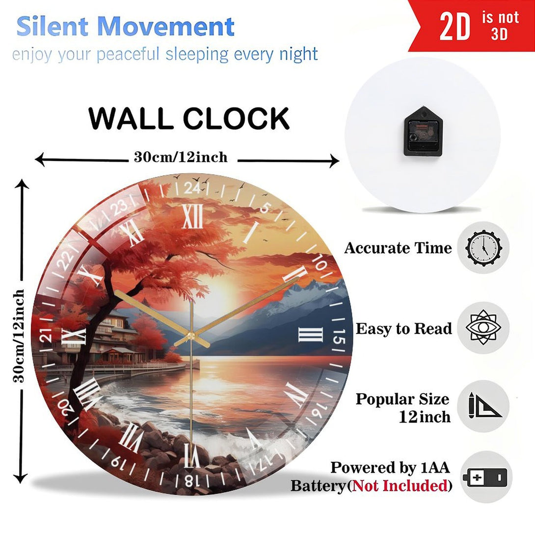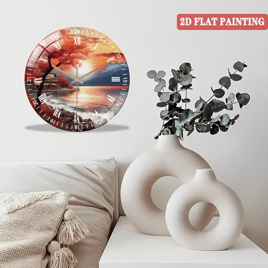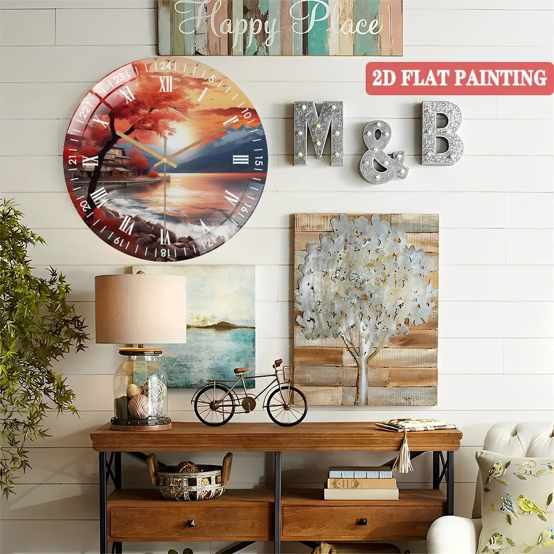 Clocks Wall Decor: Landscape Wall Art Glass Wall Clock, Landscape Decor Wall Clock for Homes, Bars, Offices, Man Caves, Garages, And Living Rooms. Style 12×12inch(30×30cm)