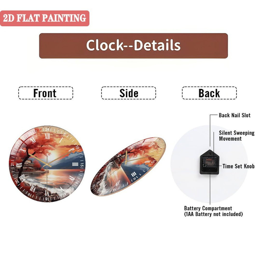 🕚[Silent Ticking Wall Clock] This glass wall clock features a silent ticking mechanism that accurately tells the time, allowing you to enjoy a peaceful rest. The precise quartz movement ensures accurate timekeeping. 🕚[High-Definition Printing] Utilizing UV high-definition printing technology, this clock boasts rich colors, delicate patterns, and a resistance to fading.