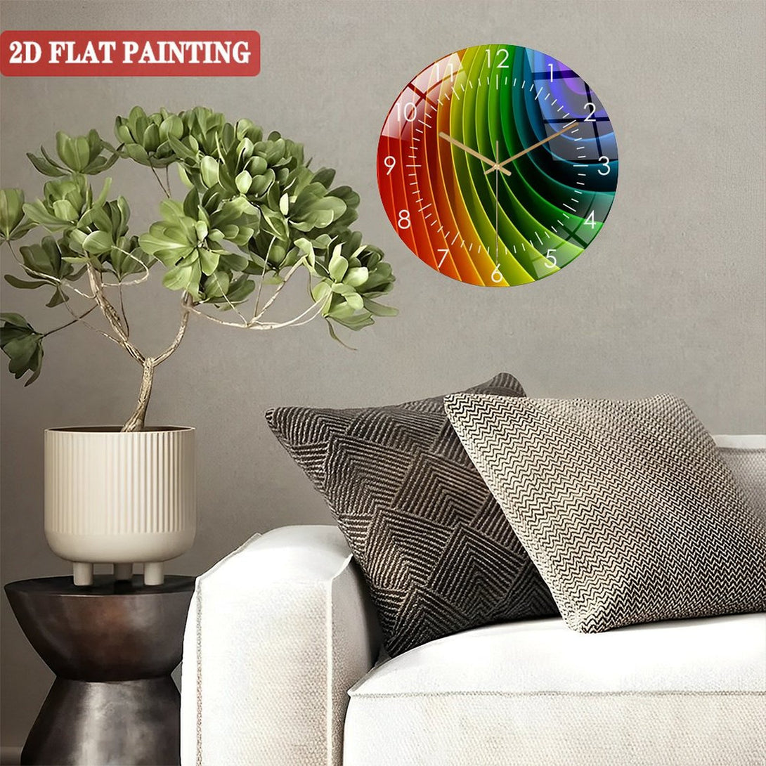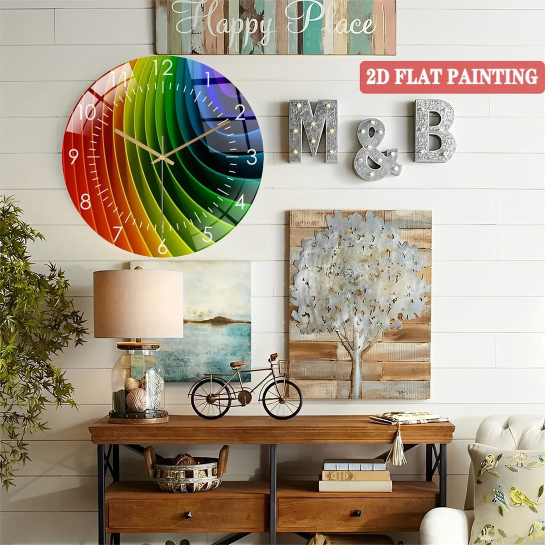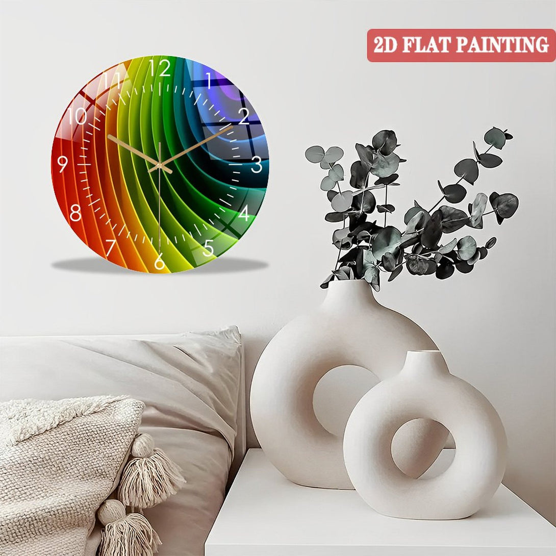Linear Rainbow Glass Round Glass Wall Clock, Rainbow Stained Glass Decor Wall Clock for Homes, Bars, Offices, Man Caves, Garages, And Living Rooms.
