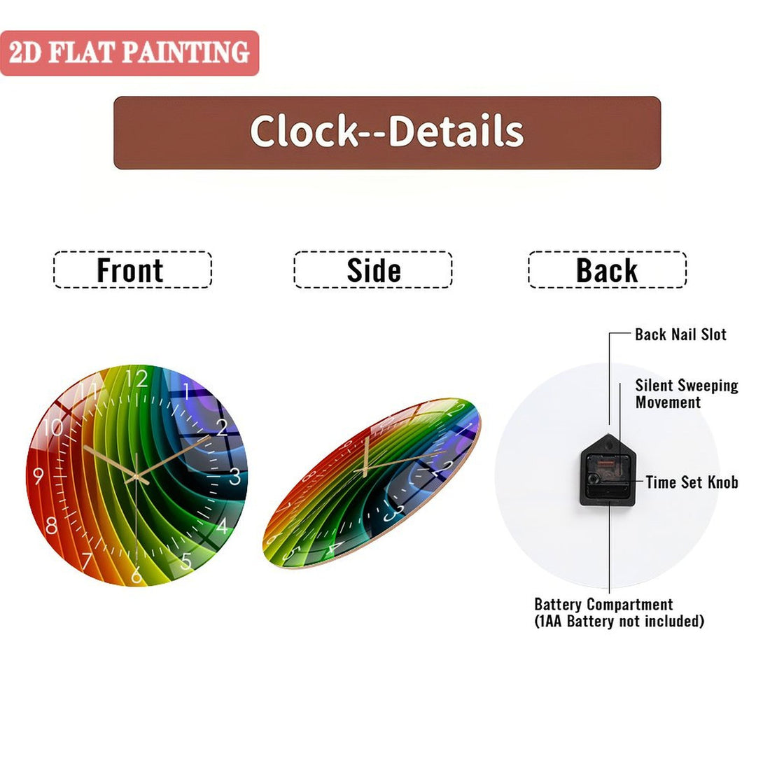 🕚[Silent Ticking Wall Clock] This glass wall clock features a silent ticking mechanism that accurately tells the time, allowing you to enjoy a peaceful rest. The precise quartz movement ensures accurate timekeeping. 🕚[High-Definition Printing] Utilizing UV high-definition printing technology, this clock boasts rich colors, delicate patterns, and a resistance to fading.