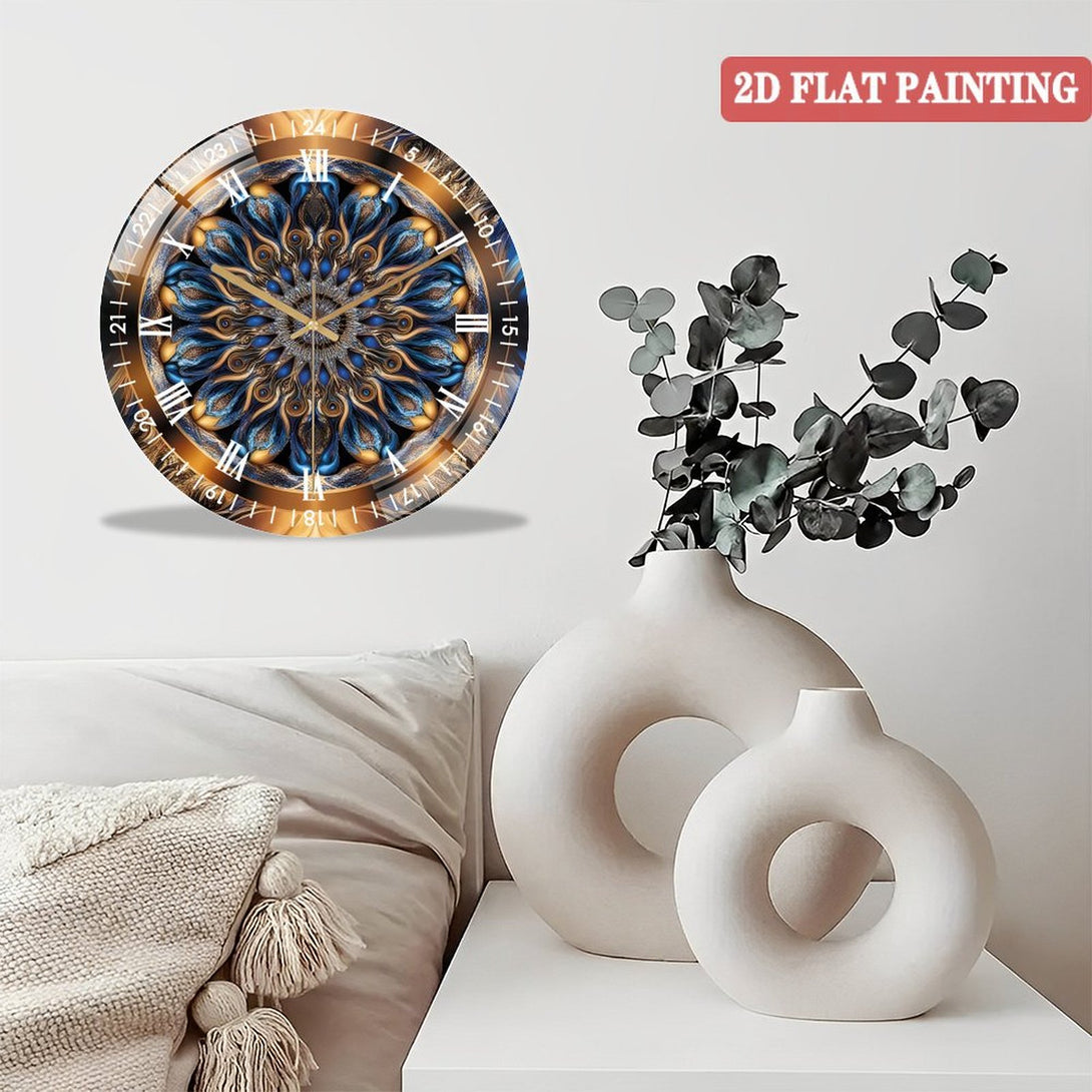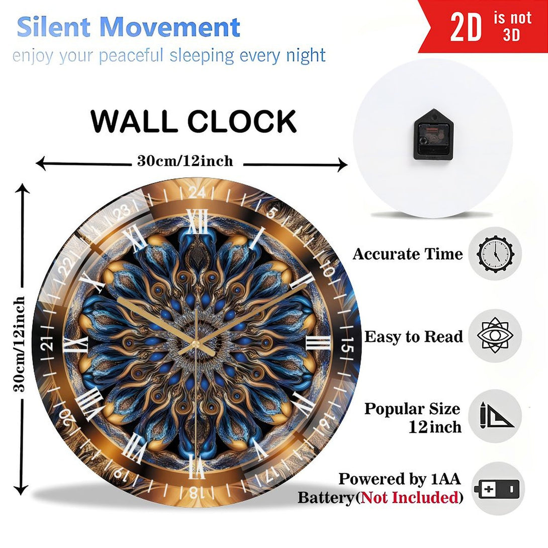 Mandala Wall Art Tempered Glass Wall Clock, Floral Mandala Decor Wall Clock for Homes, Bars, Offices, Man Caves, Garages, And Living Rooms.