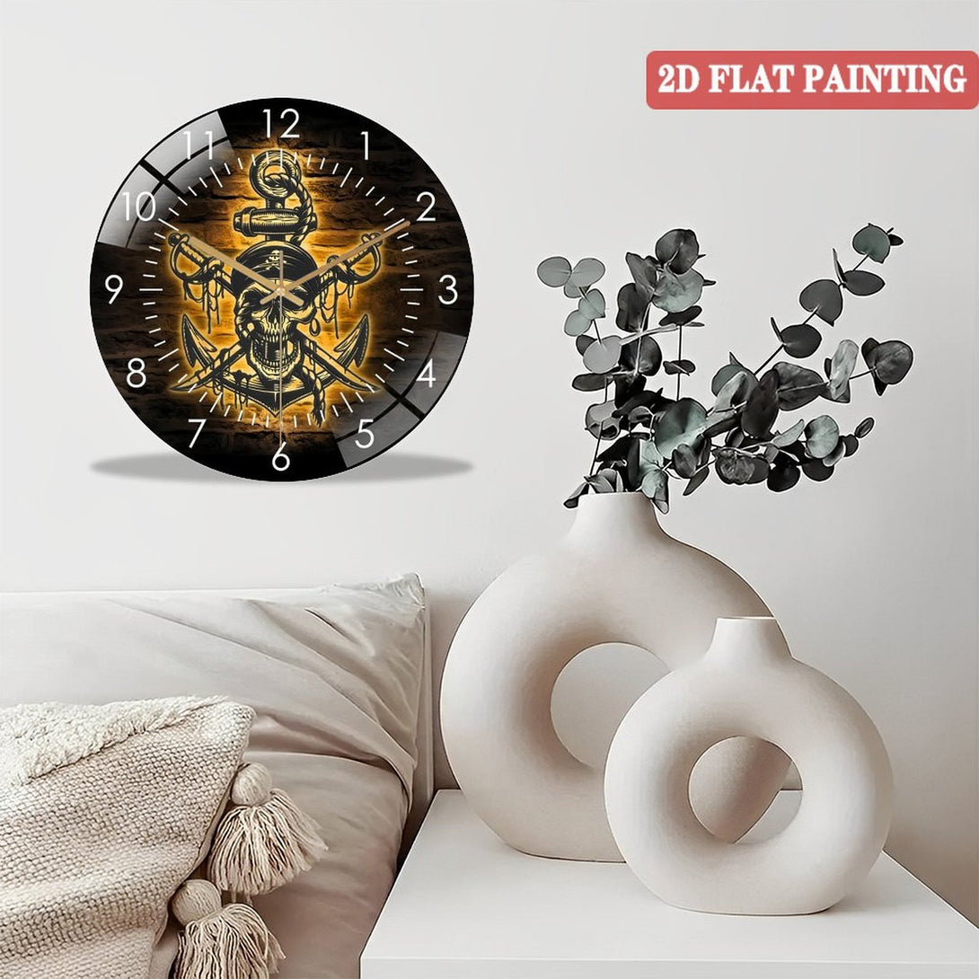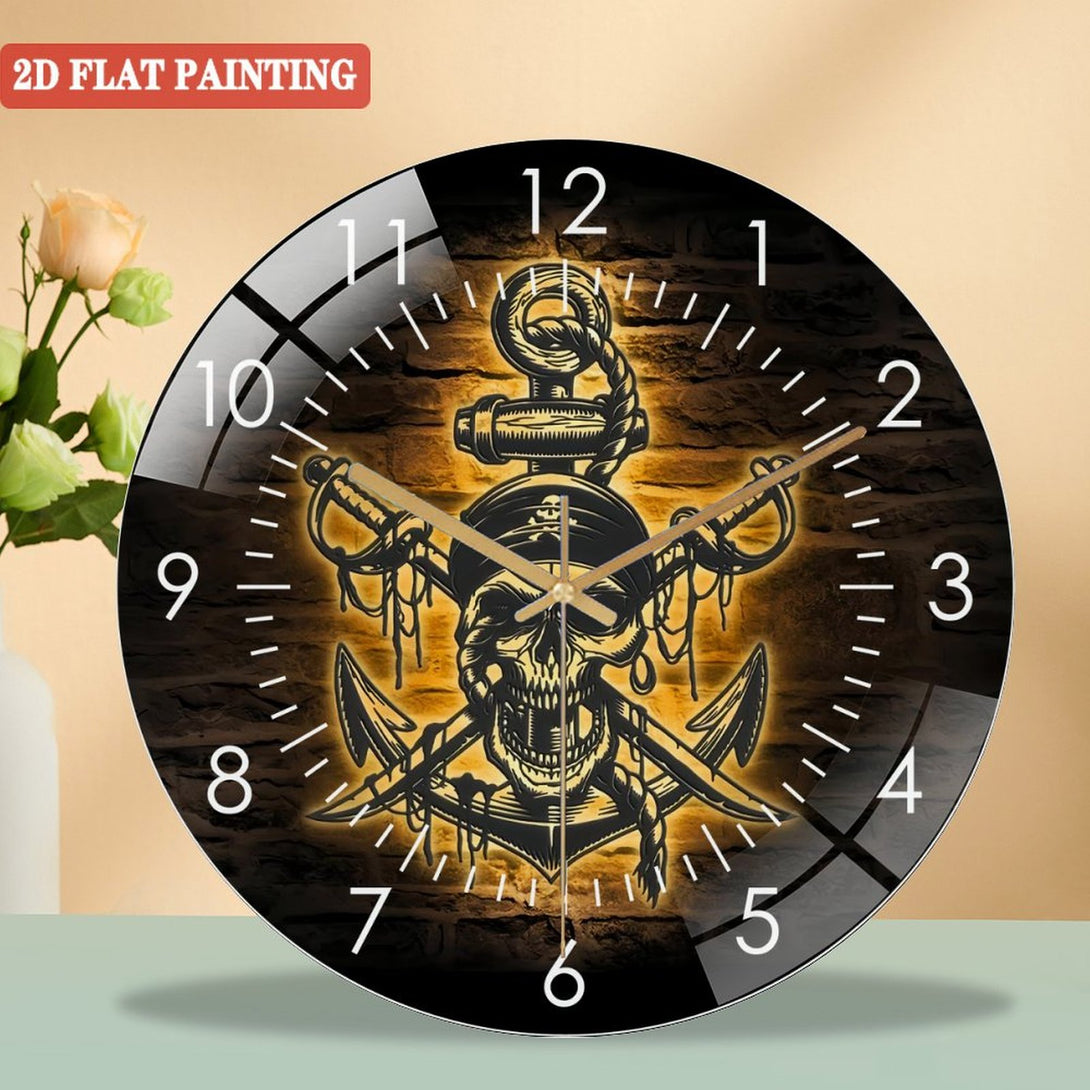 Pirate Skull Swords Anchor Glass Wall Clocks, Pirate Ship Glass Wall Clocks, Home Decor Skeleton Piracy Nursery Decoration Birthday Housewarming