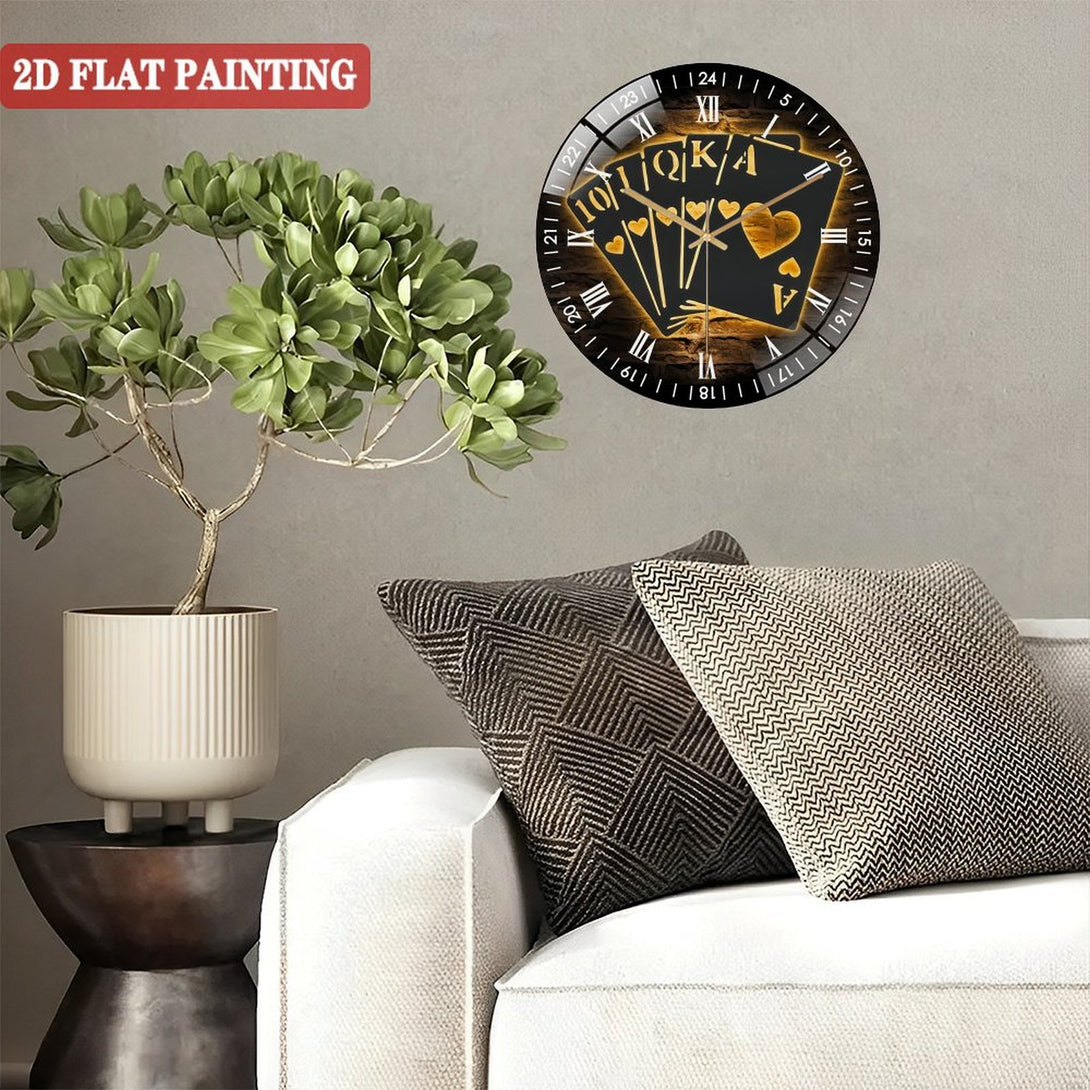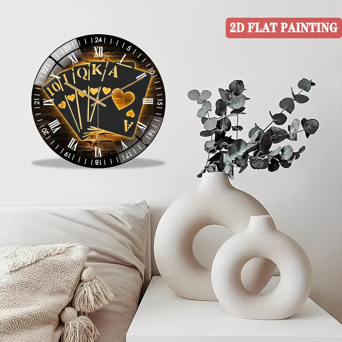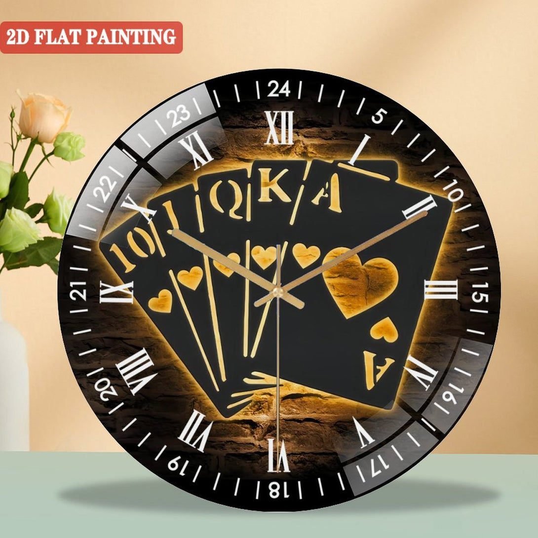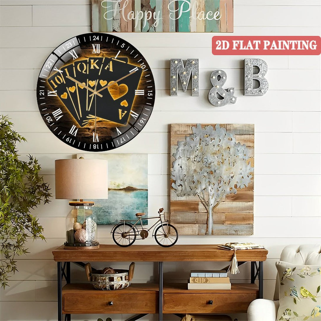 Clocks Wall Decor: Poker Cards Casino Glass Wall Clocks,Playing Card Room Glass Wall Clocks,Home Decor Game Zone Decoration Gamer Housewarming Birthday Dad Gift Style 12×12inch(30×30cm)