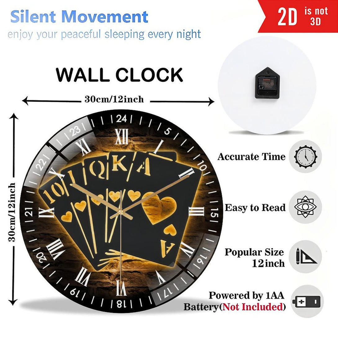 Poker Cards Casino Glass Wall Clocks,Playing Card Room Glass Wall Clocks,Home Decor Game Zone Decoration Gamer Housewarming Birthday Dad Gift