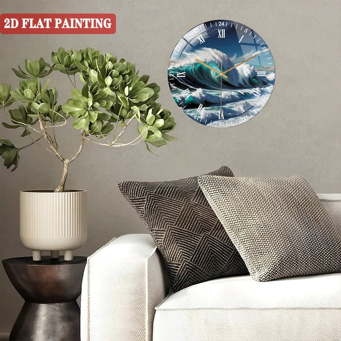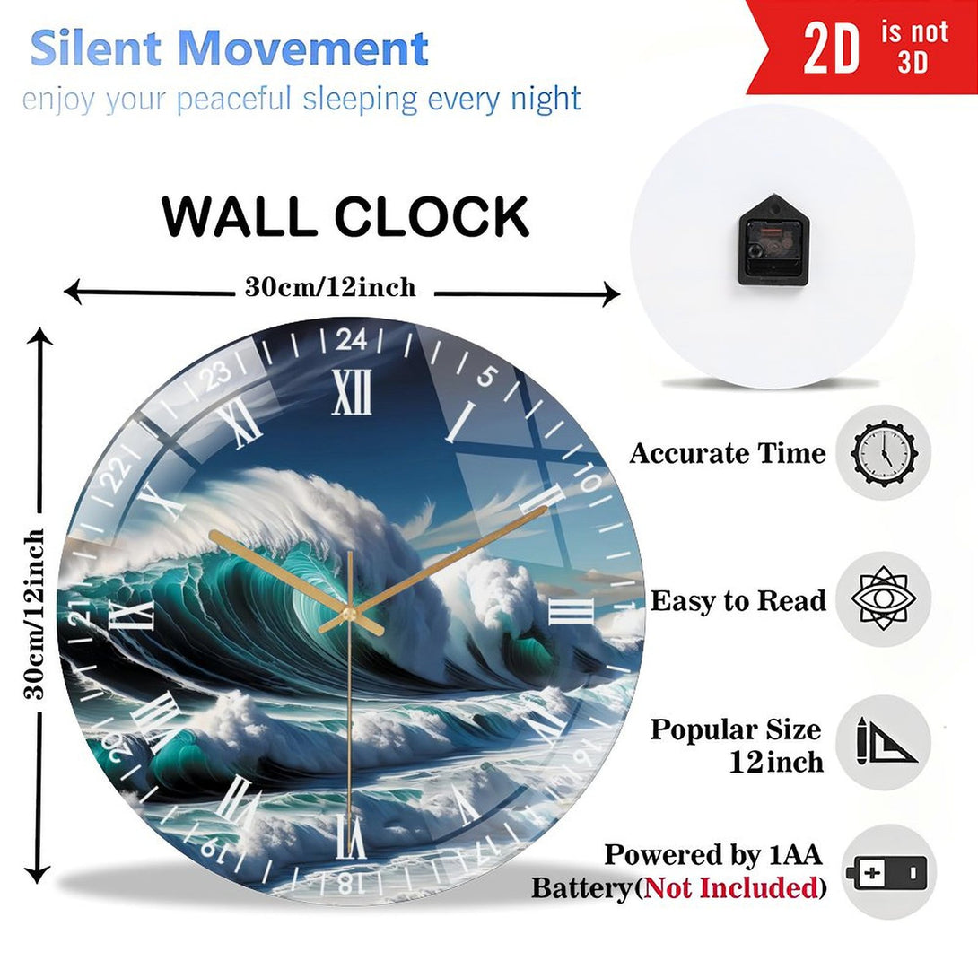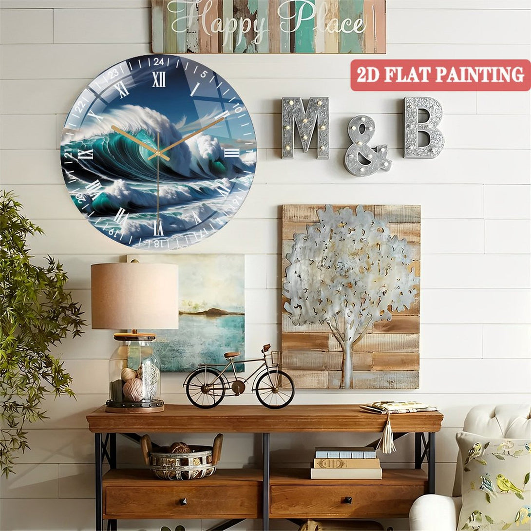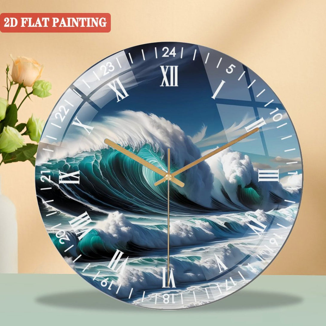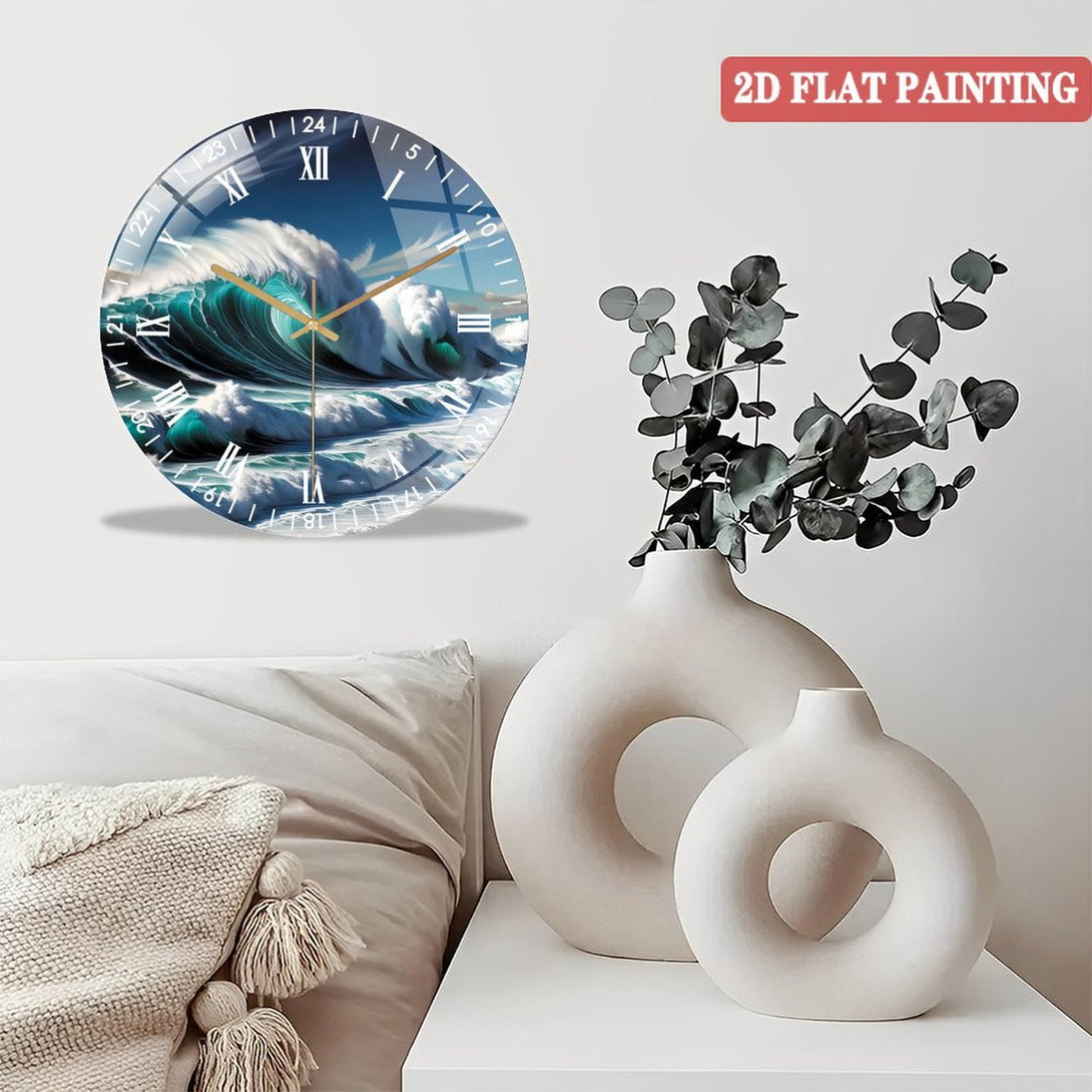 Sea Waves Wall Art Glass Wall Clock, Tropical Beach Wall Art Decor Wall Clock for Homes, Bars, Offices, Man Caves, Garages, And Living Rooms. for Gift Home Wall Decor.