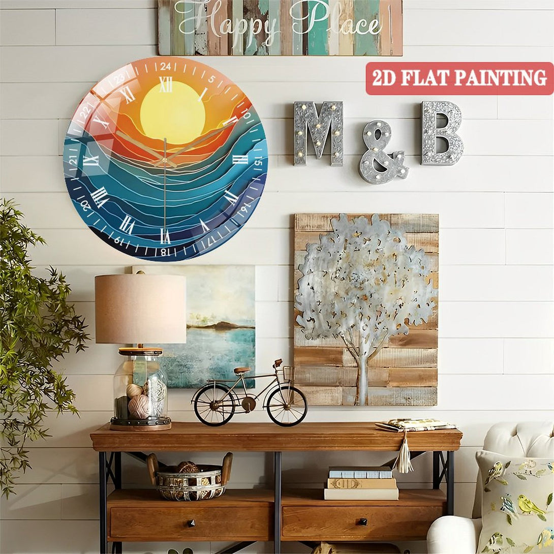 Clocks Wall Decor: Sunset Stained Tempered Glass Round Glass Wall Clock, Sunset Stained Glass Window Decor Wall Clock for Homes, Bars, Offices, Man Caves, Garages, And Living Rooms.
