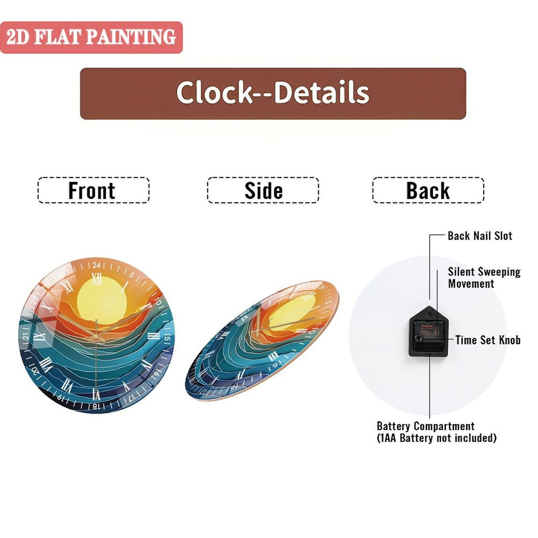 🕚[Silent Ticking Wall Clock] This glass wall clock features a silent ticking mechanism that accurately tells the time, allowing you to enjoy a peaceful rest. The precise quartz movement ensures accurate timekeeping. 🕚[High-Definition Printing] Utilizing UV high-definition printing technology, this clock boasts rich colors, delicate patterns, and a resistance to fading.