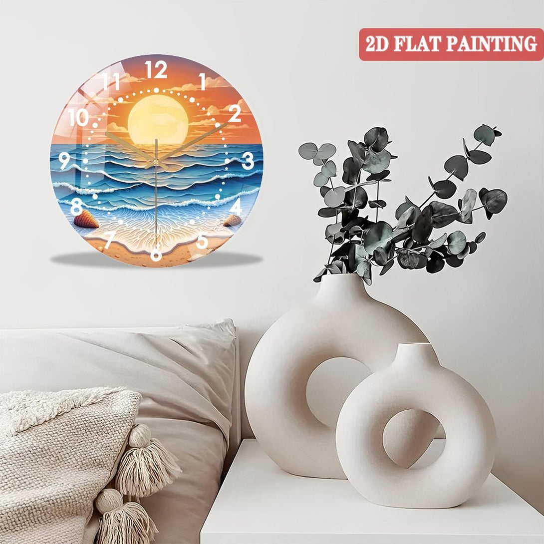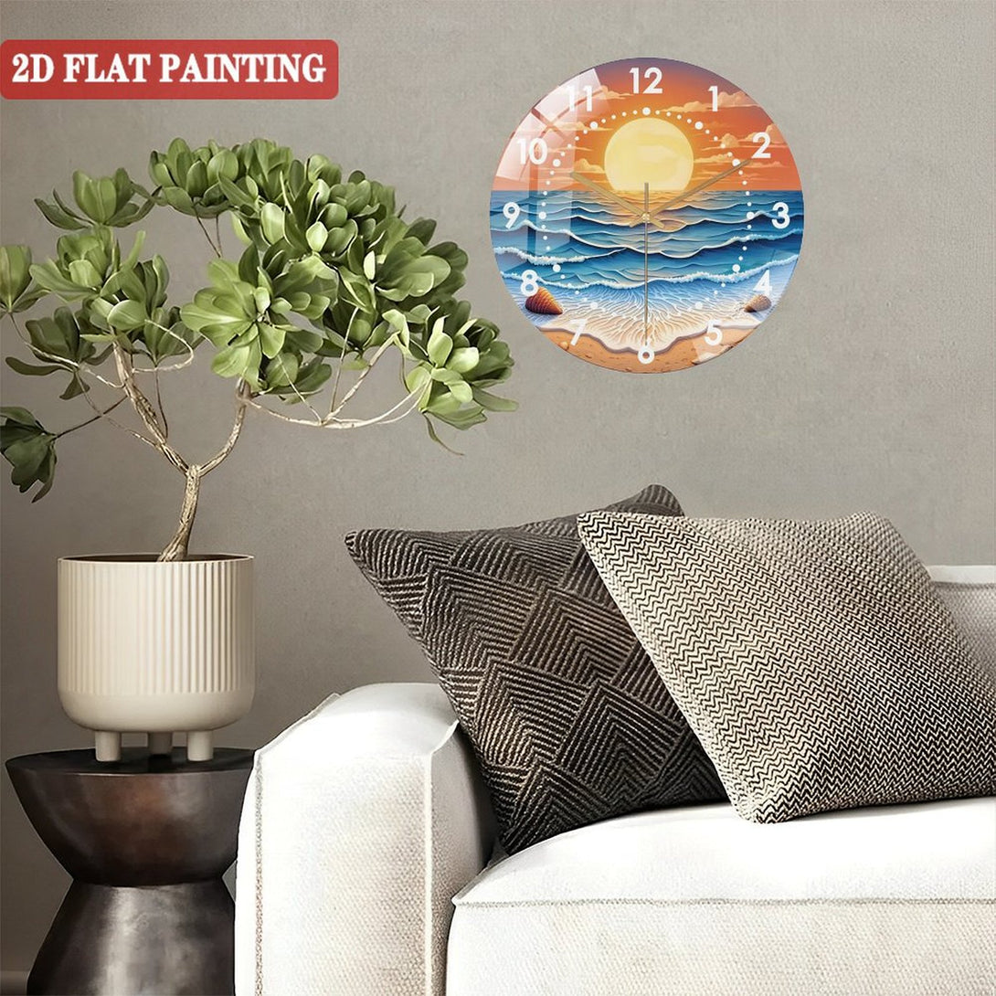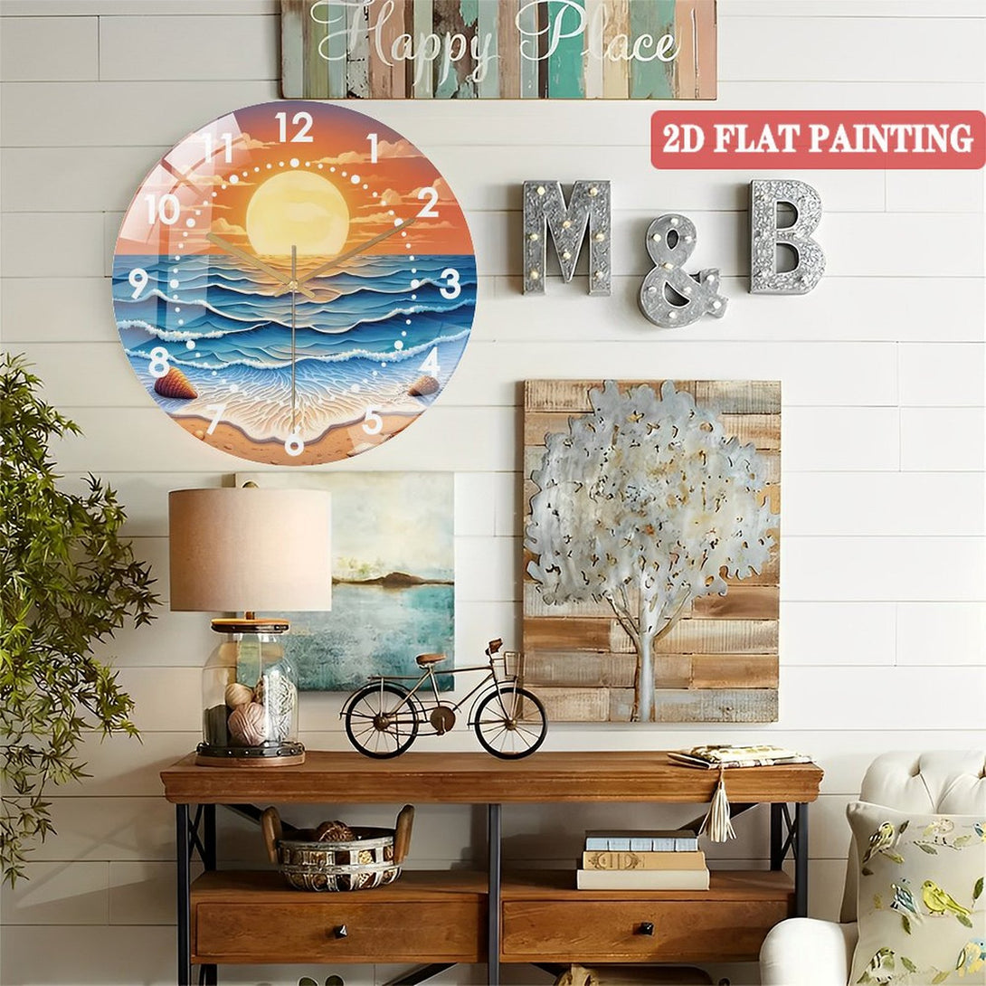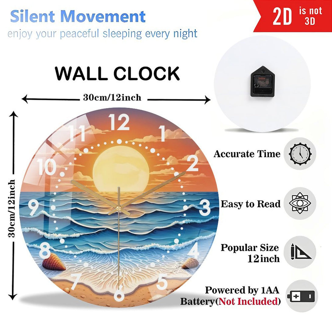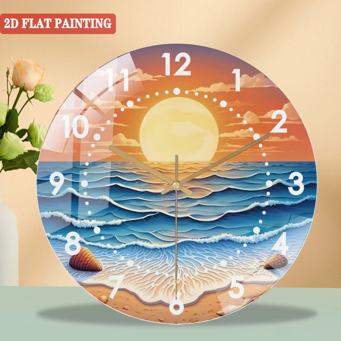 Sunset Tempered Glass Wall Art Glass Wall Clock, Abstract Glass Art Decor Wall Clock for Homes, Bars, Offices, Man Caves, Garages, And Living Rooms. for Gift Home Wall Decor.