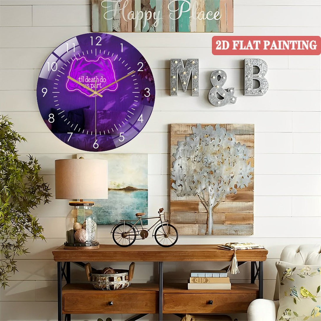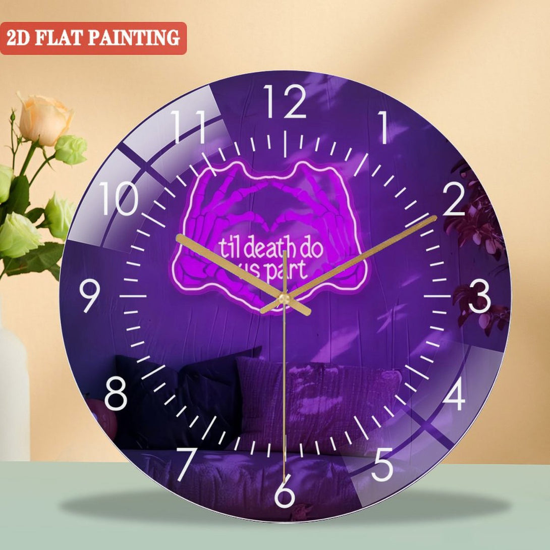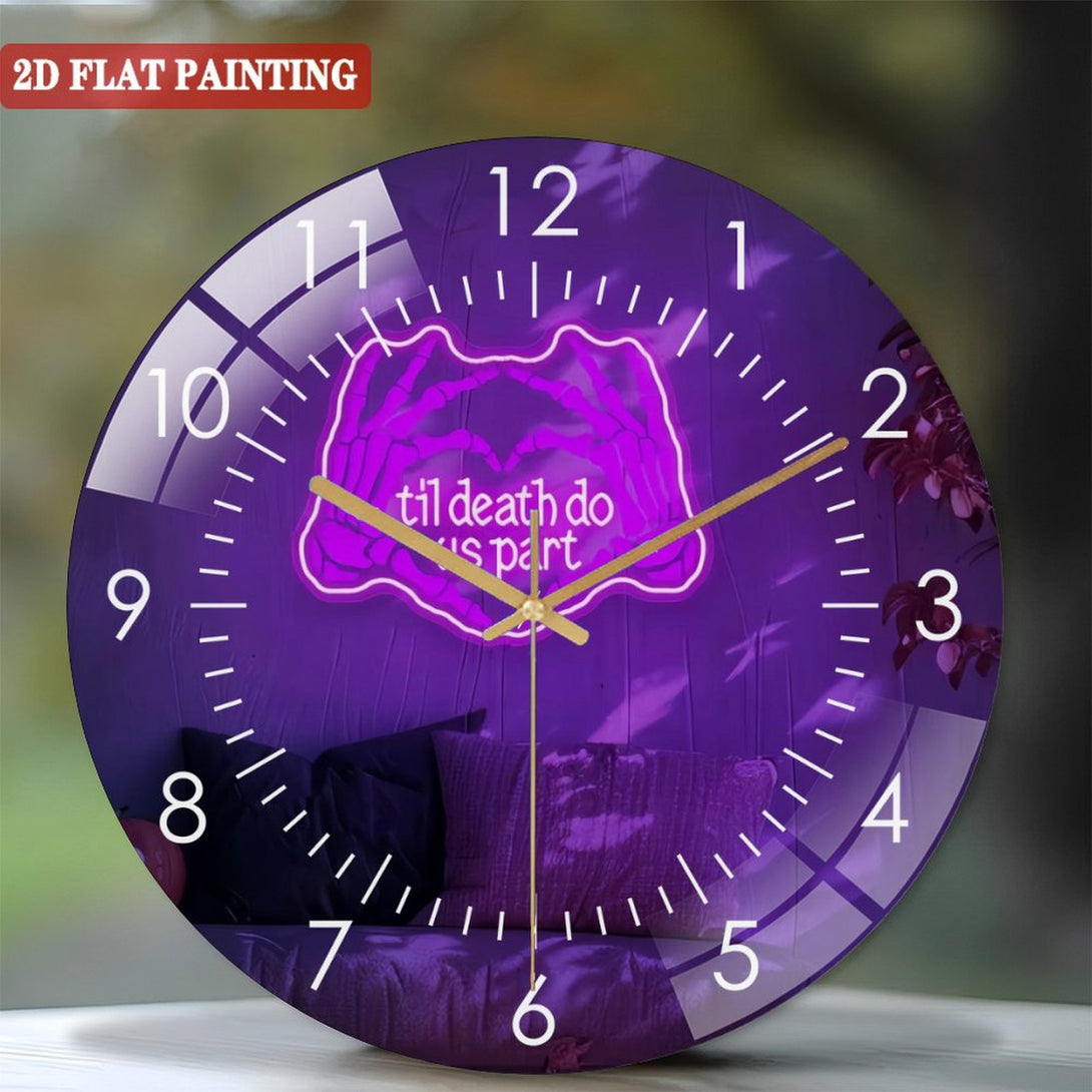 Til Death Do Us Part Glass Wall Clocks,Skeleton Hands Glass Wall Clocks for Gothic Wedding Halloween Decor Spooky Couple Room Or Love Gift