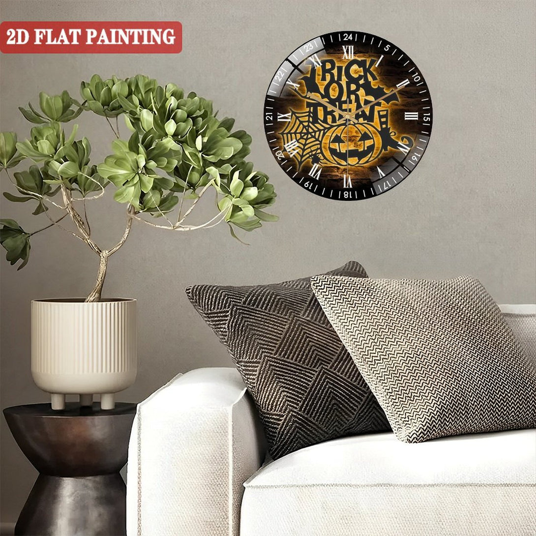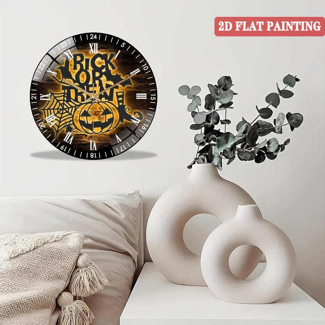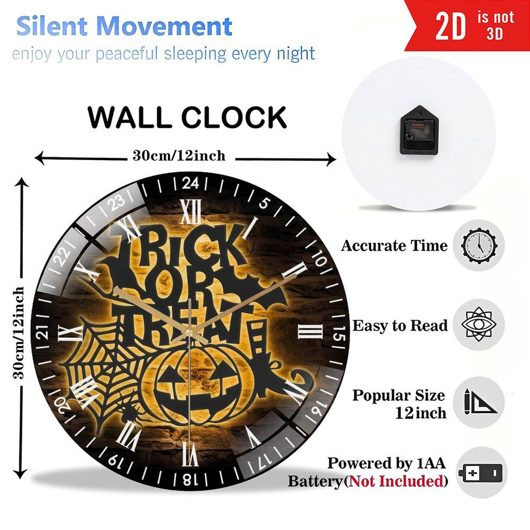 Trick Or Treat Halloween Glass Wall Clocks, Pumpkin Spiderweb Glass Wall Clocks,Home Decor Halloween Decoration Happy Halloween Outdoor Gift.