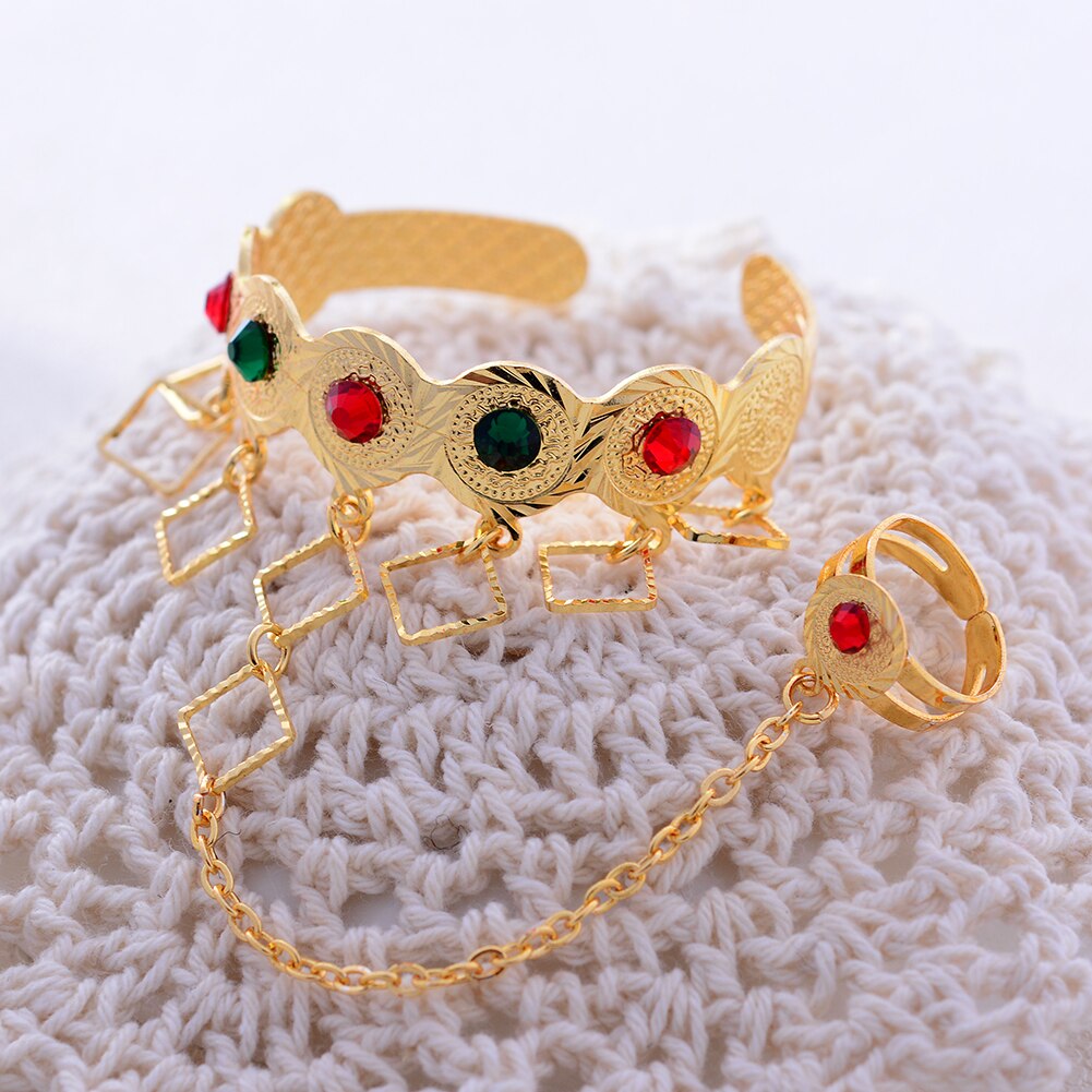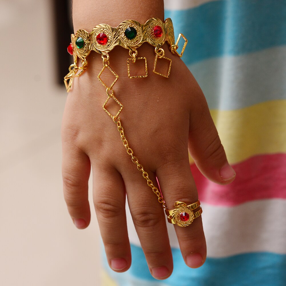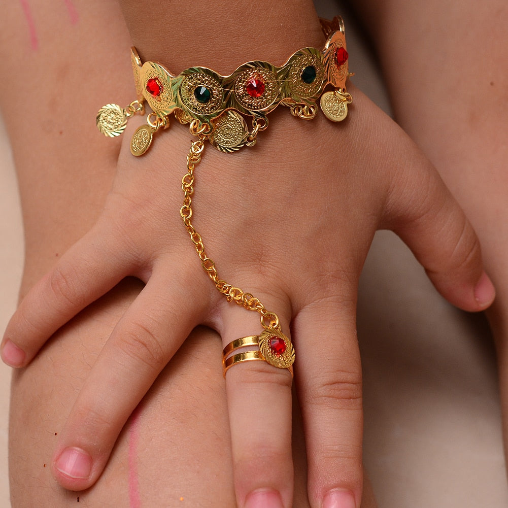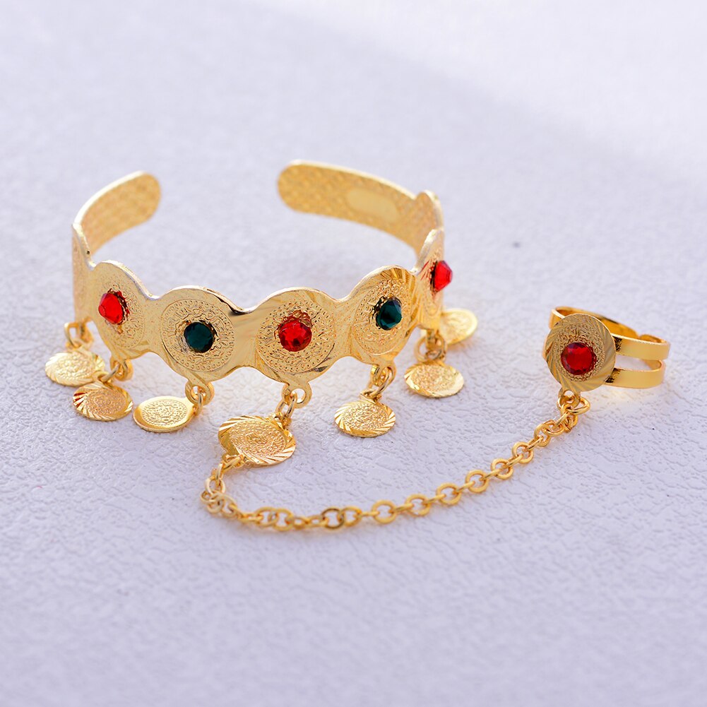 Afraic Jewelry- color Stone Coin Bangle Ring Baby/Child Middle East Jewelry Muslim Islamic Charm Bracelets Coins Money Jewelry