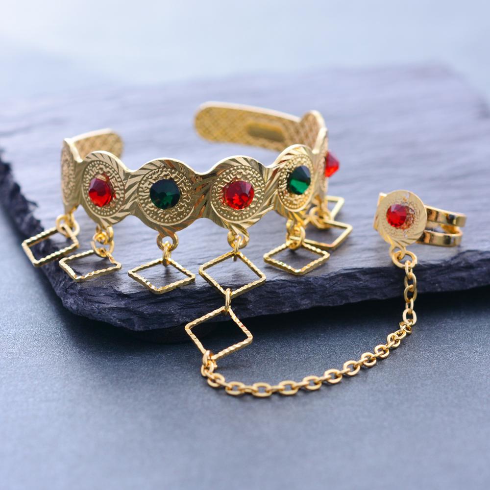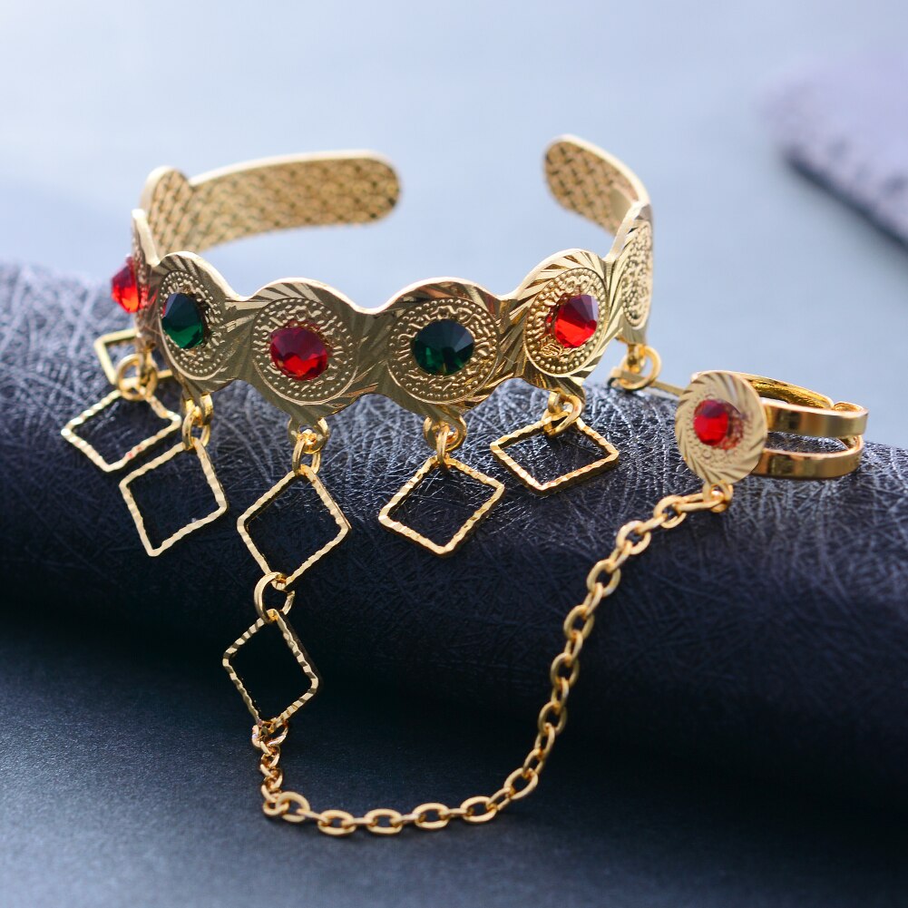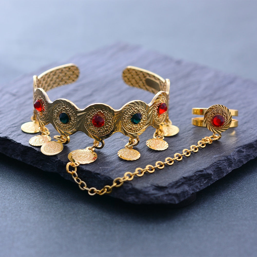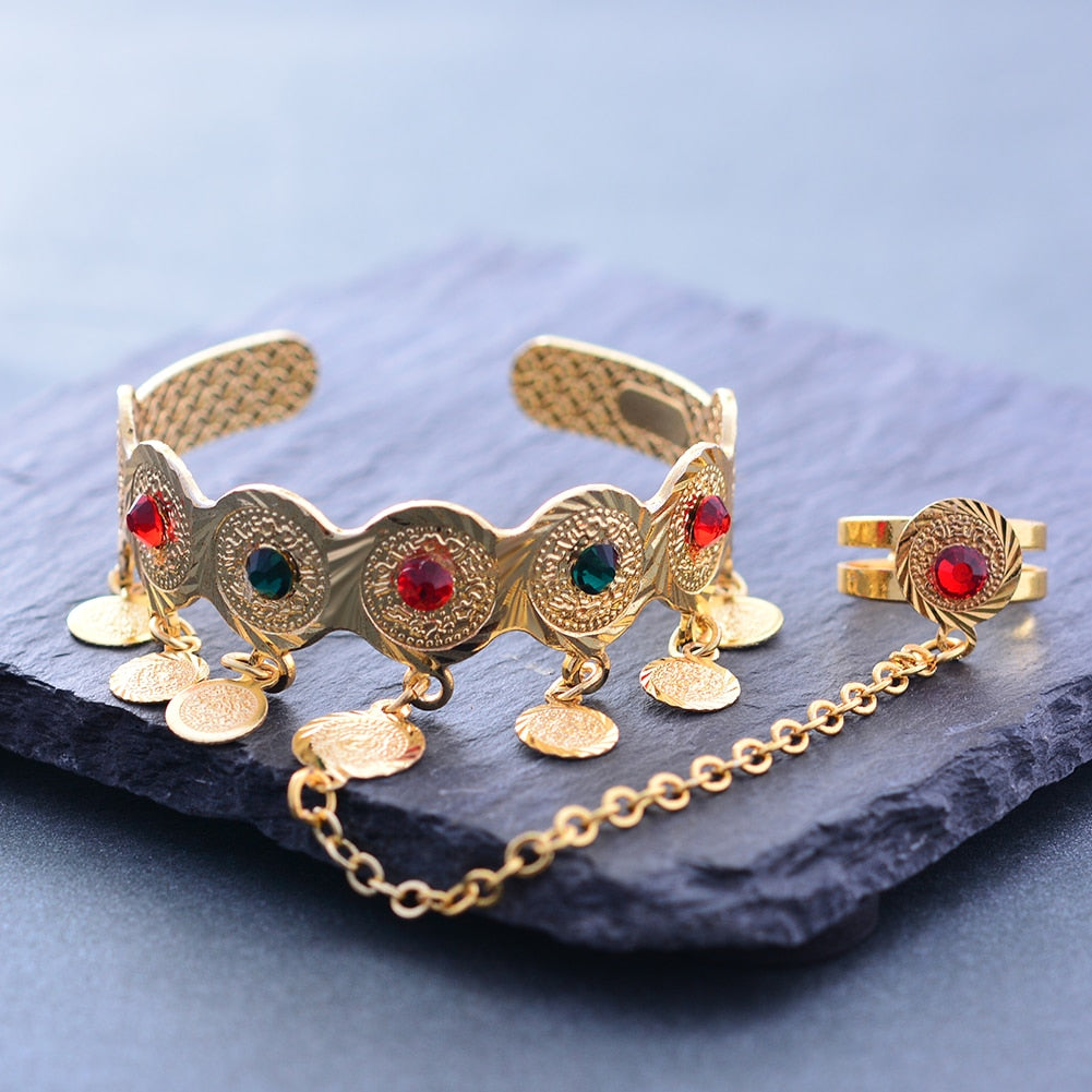Afraic Jewelry- color Stone Coin Bangle Ring Baby/Child Middle East Jewelry Muslim Islamic Charm Bracelets Coins Money Jewelry