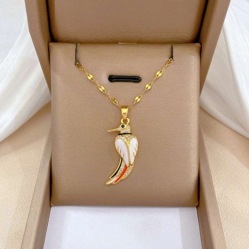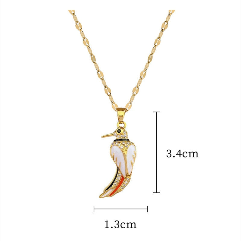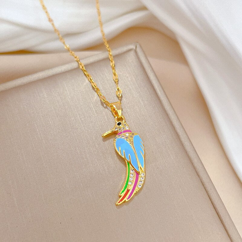 585 Gold Jewelry-316L Stainless Steel Colorful Animal Bird Pendant Necklace For Women Lady Woodpecker Clavicle Chain Luxury Party Jewelry