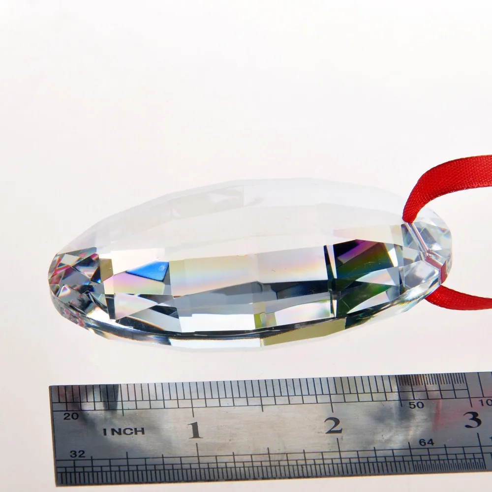 Crystal prism- Colorful Oval Drop Hanging Crystals Chandelier Prisms Rainbow Maker Suncatcher Feng Shui Ornament 76mm Home Wedding Decor