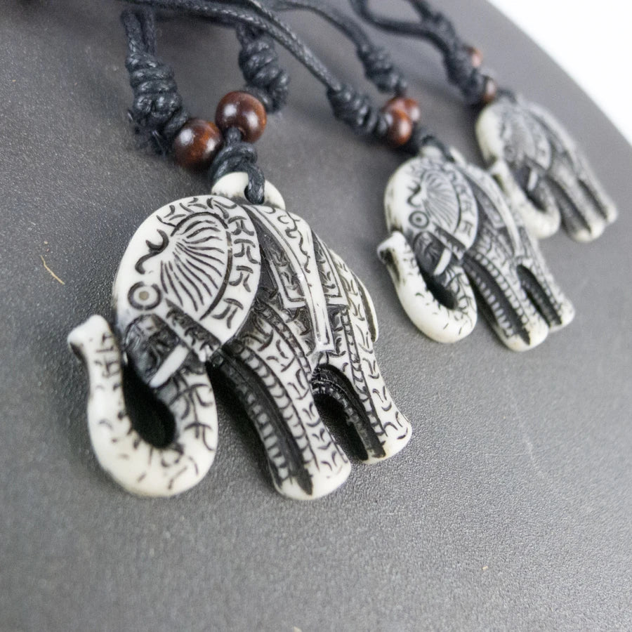 Cool Elephant Man Pendants Jewelry Bone Art Imitation Yak Bone Material Necklace Pendant Vintage Men's Necklaces