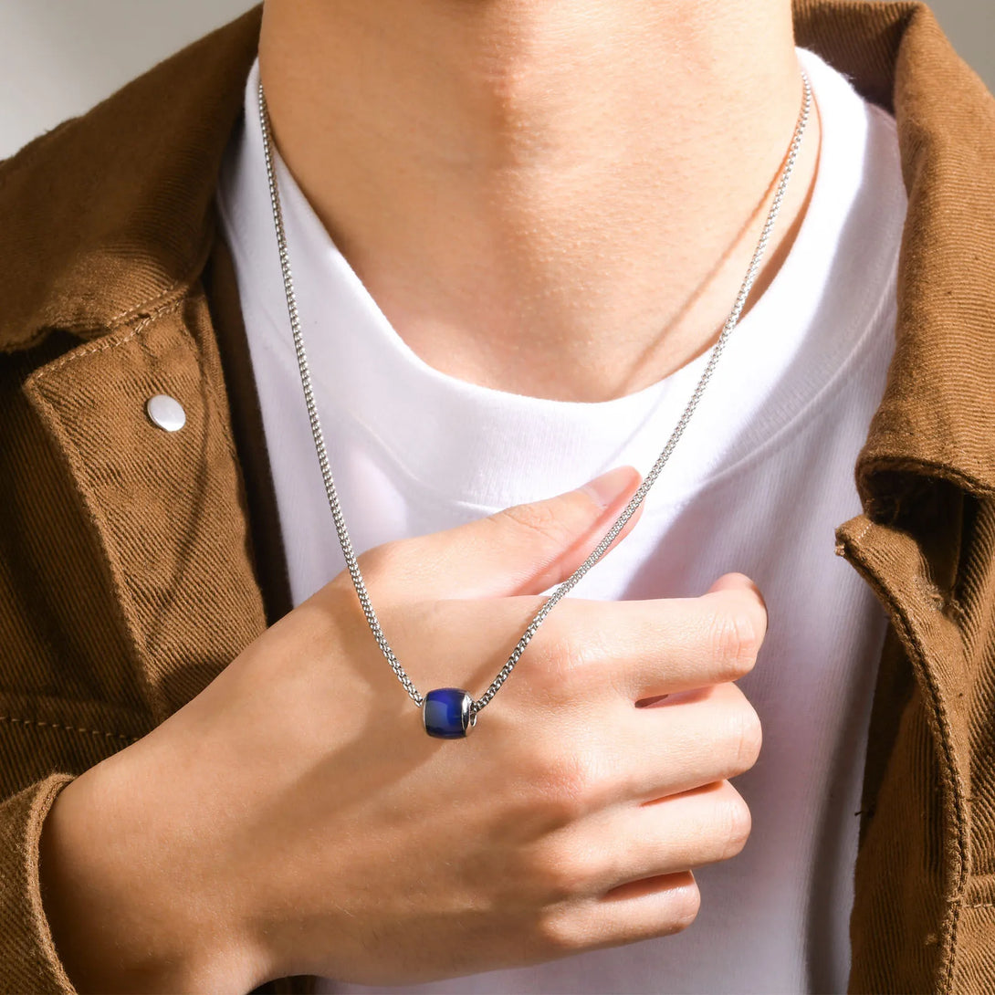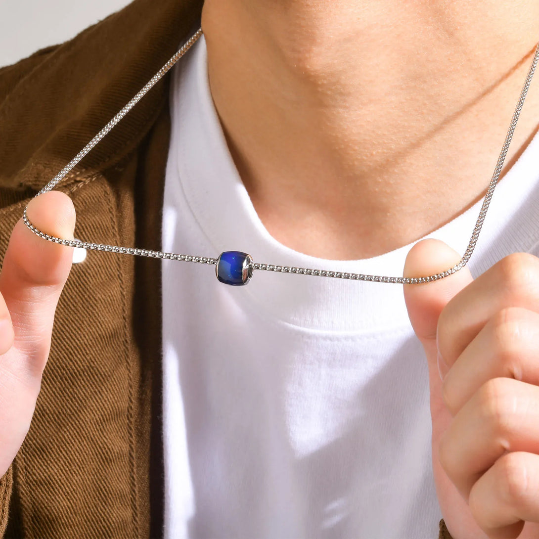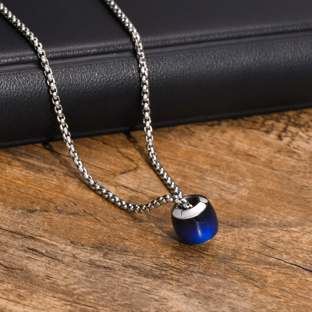 Cool Fashion Temperature Change Color Mood Necklaces for Men,Smart Discolor Stainless Steel Bead Pendant Collar Gift Jewelry