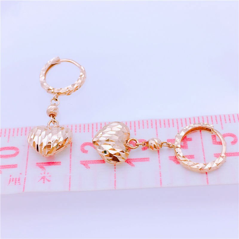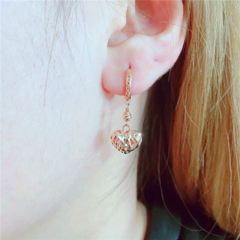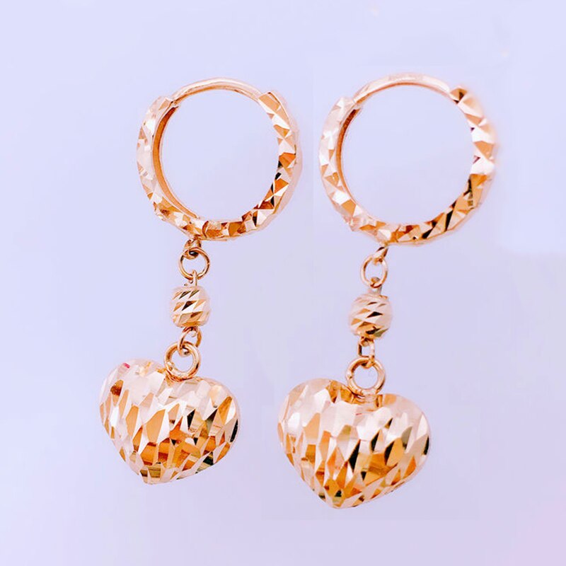 Drop Earrings-Creative 585 Purple Gold Plated 14K Rose Gold Shiny Heart earrings for women Simple Sweet Romantic Wedding Jewelry Gift