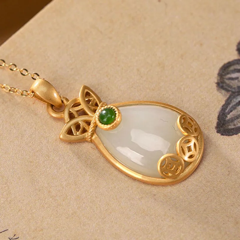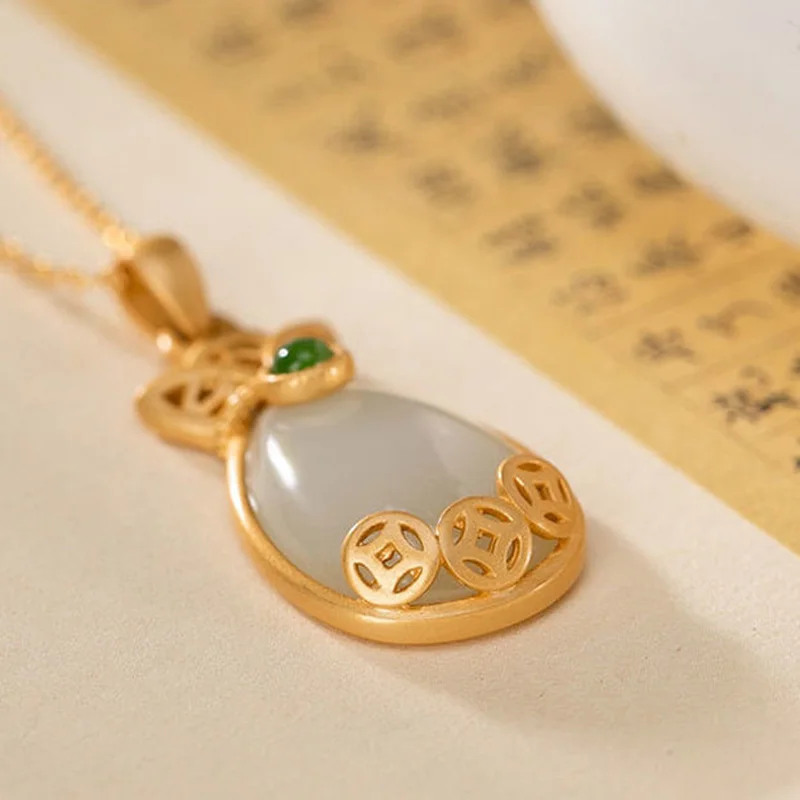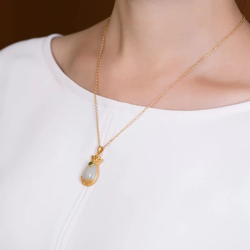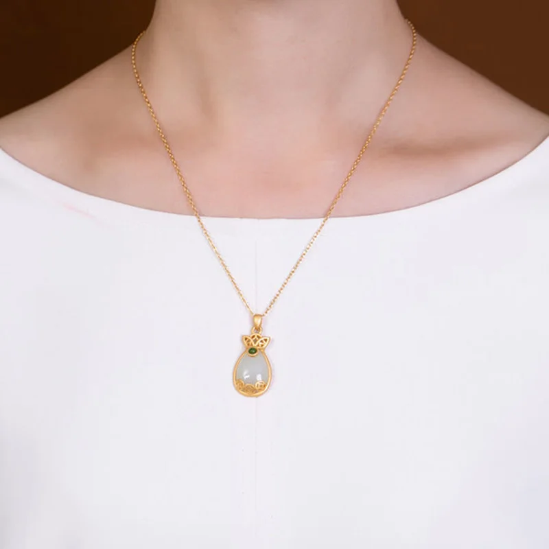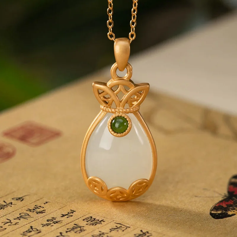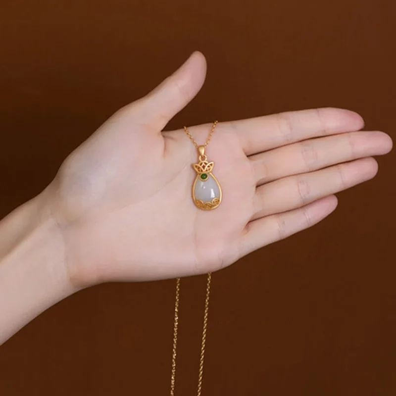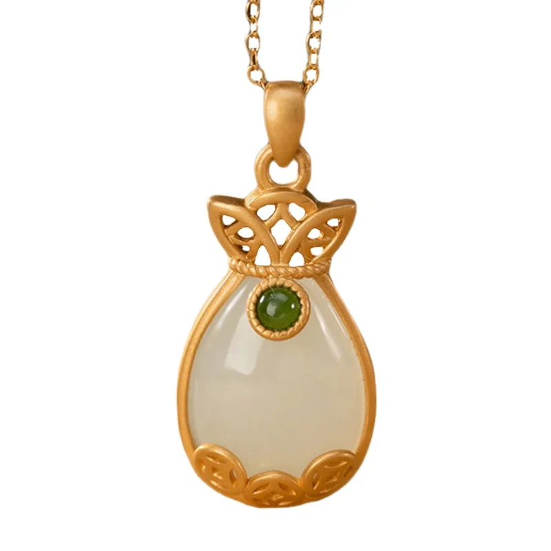 Pendants-Creative Design Inlaid Natural Hetian White Jade Money Bag Pendant Ladies Necklace Palace Style Ancient Charm Jewelry