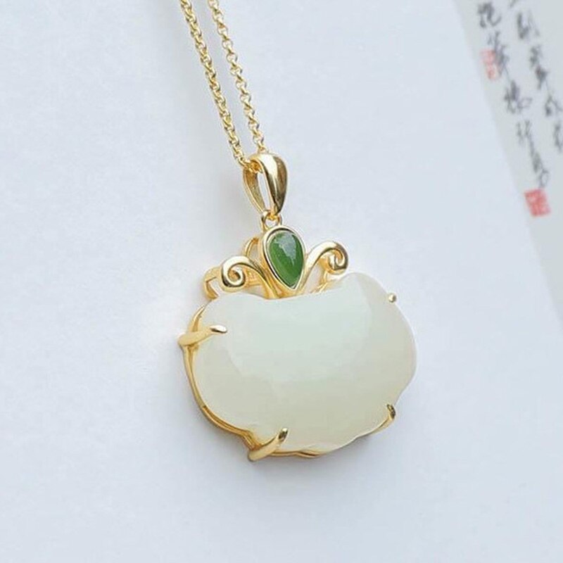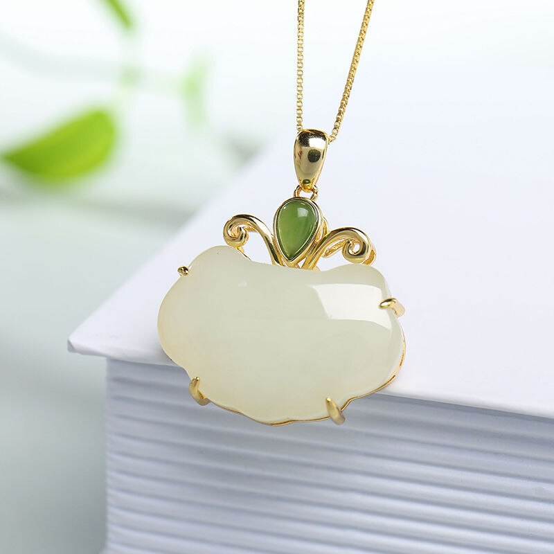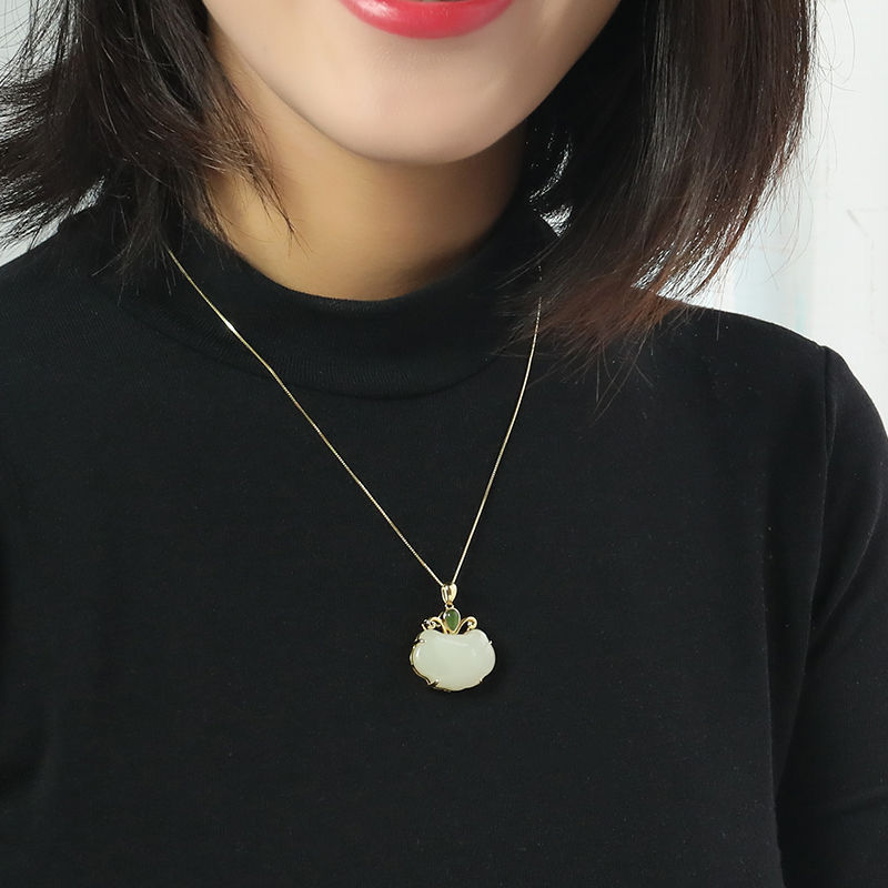Creative design natural Hetian chalcedony auspicious cloud pendant ladies necklace