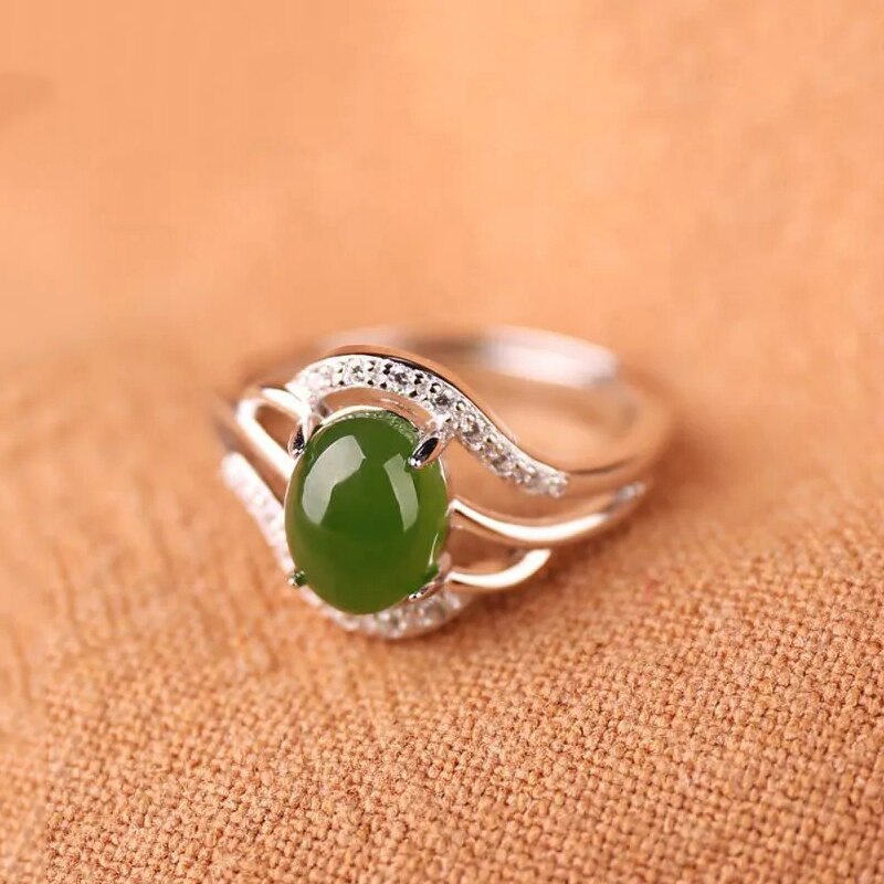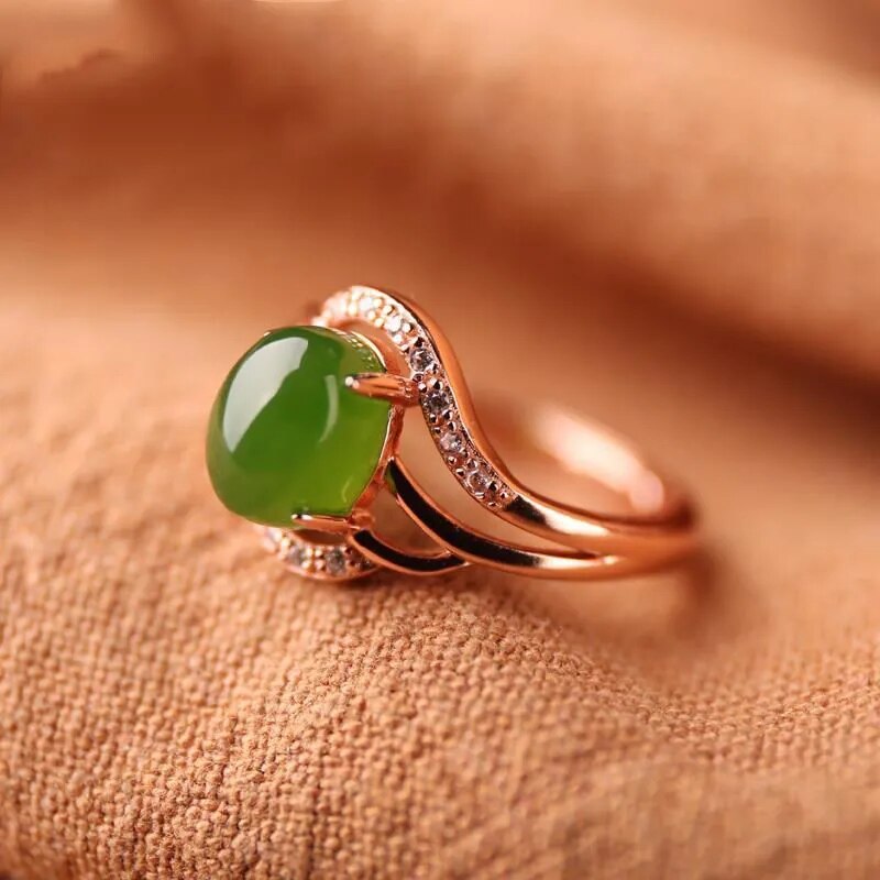 Cocktail Ring-Creative Design Rose Gold Inlaid Natural Jasper Oval Opening Adjustable Ladies Ring Elegant Charm Silver Jewelry