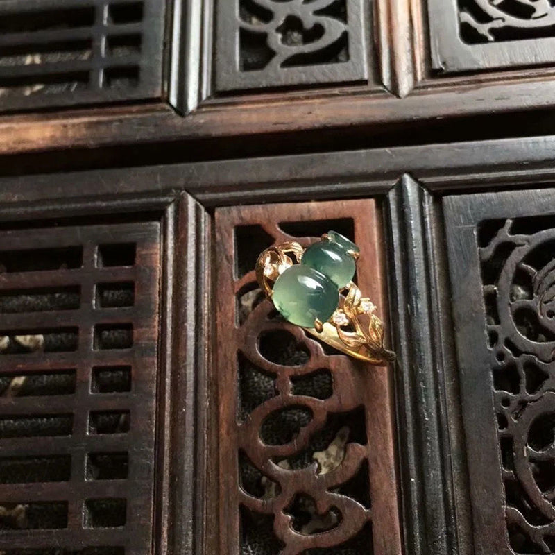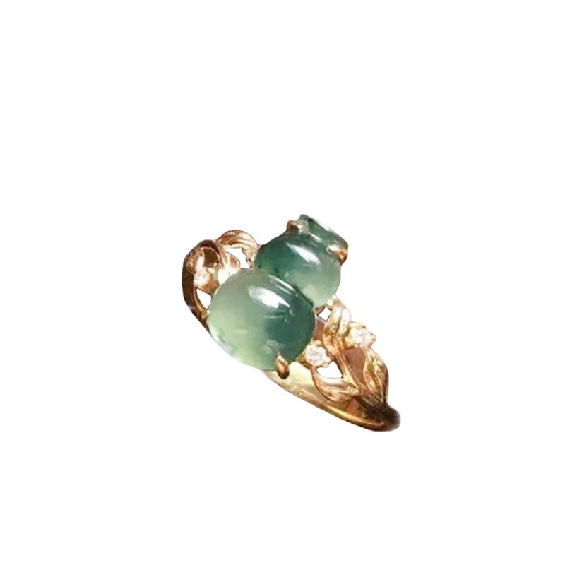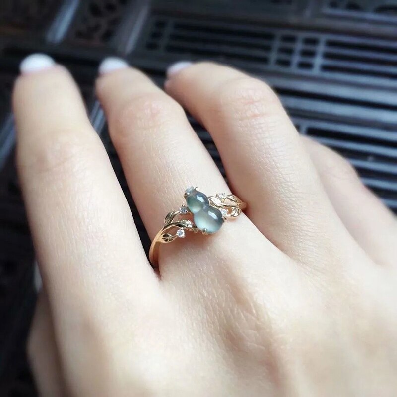 Cocktail Ring-Creative Natural High Ice Chalcedony Silver Inlaid Gourd Leaf Opening Adjustable Ring Elegant Charm Exquisite Ladies Jewelry