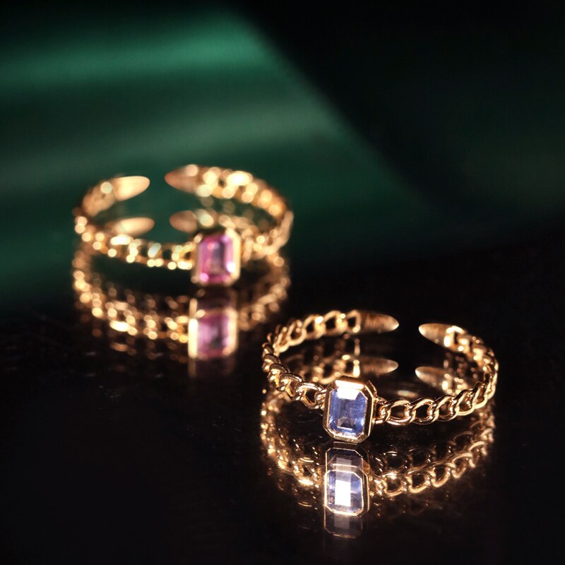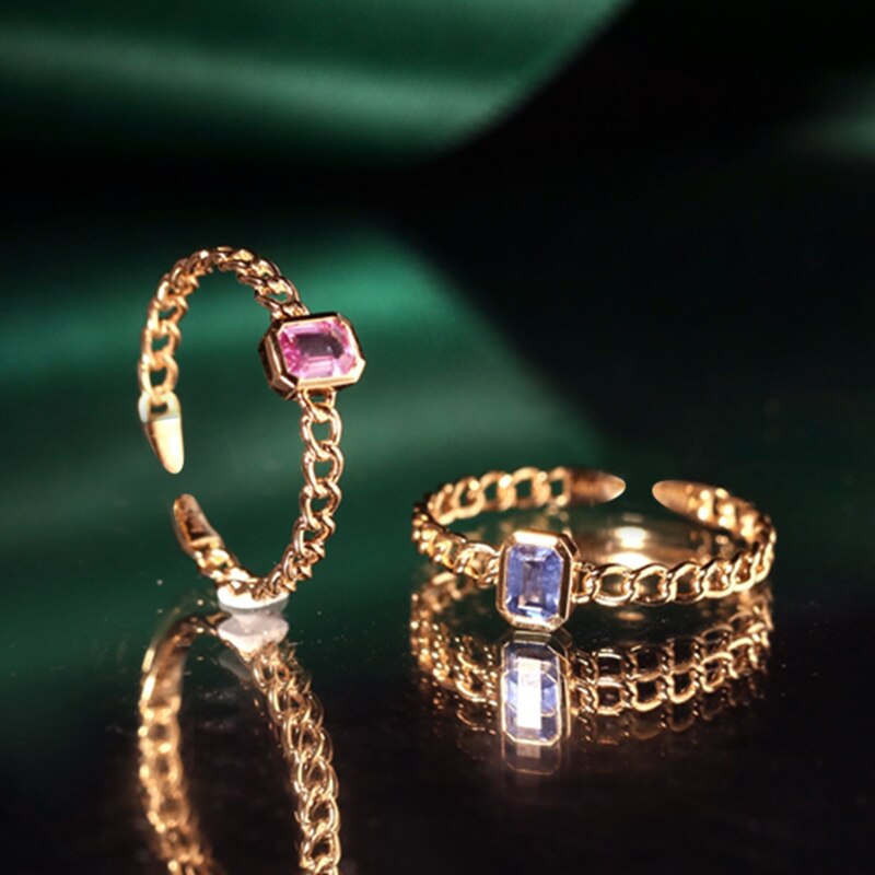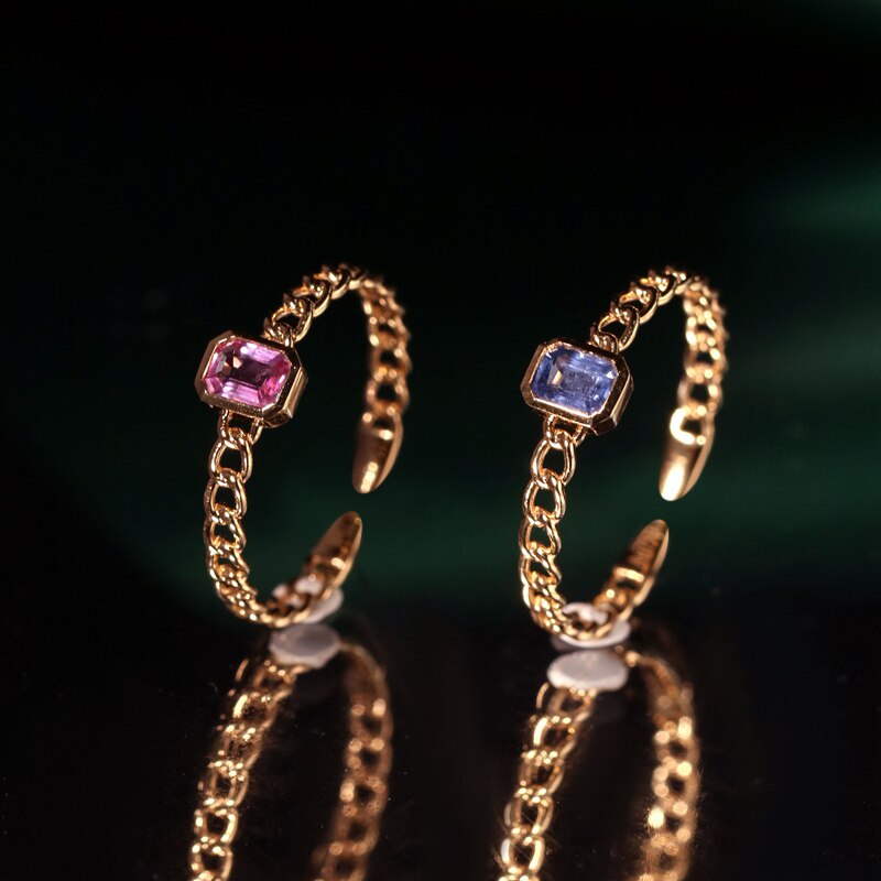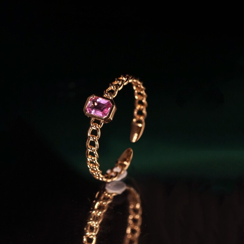 Cocktail Ring-Creative S925 silver fantasy square pink crystal wedding rings for couples twist sapphire light luxury delicate jewelry