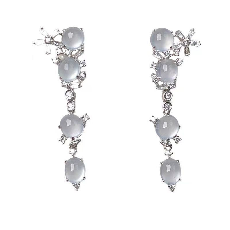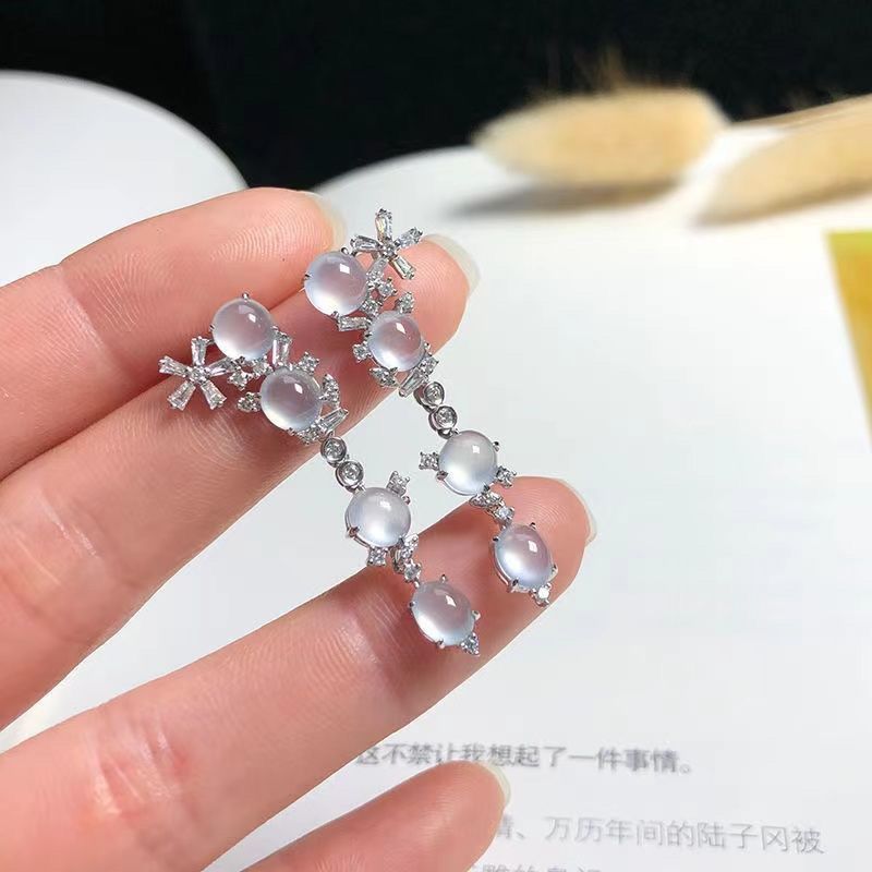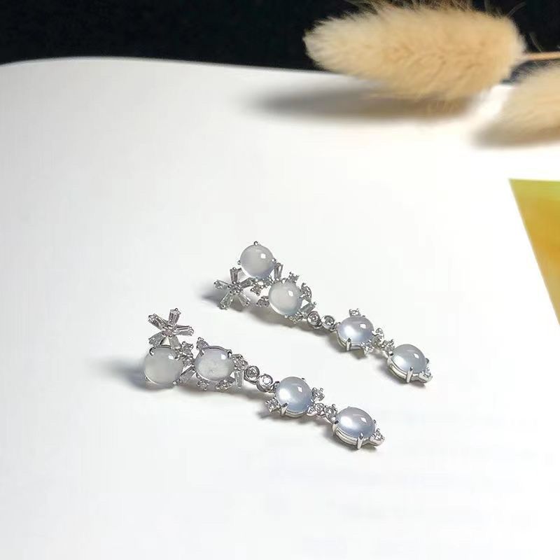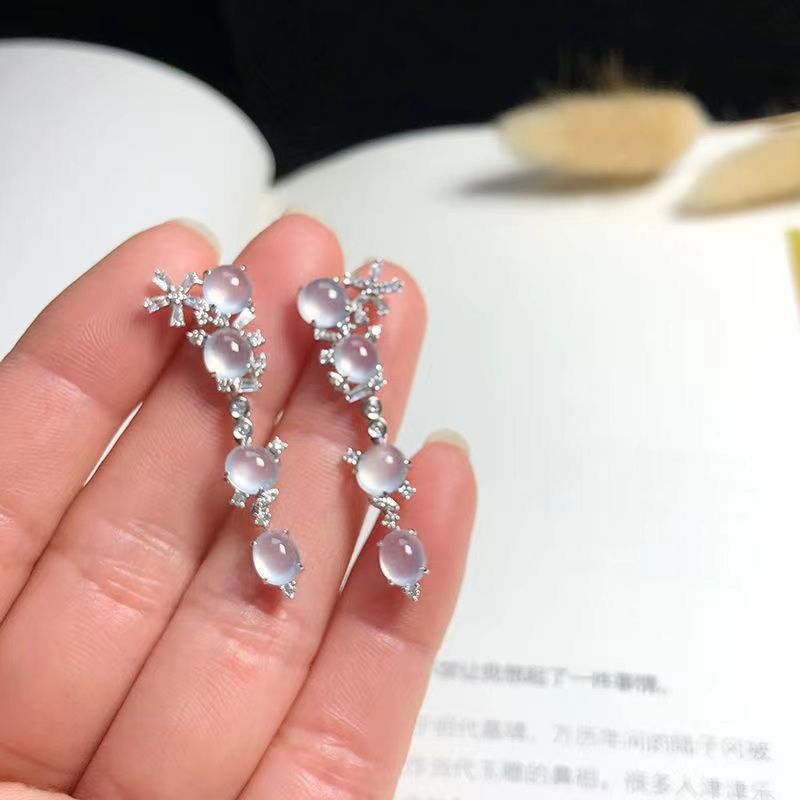 Drop Earrings-Creative Snowflake Natural Ice seed Jade Marrow Earrings for Women Long Round Light Luxury white Earrings Engagement Jewelry