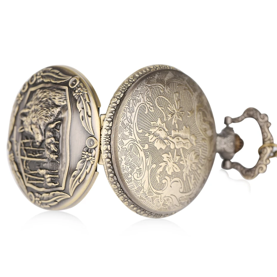 Pocket & Fob Watches-Creative Wild Wolf Retro Bronze Pocket Watch Men Women Fashion Pendant Awesome Animal Quartz Clock with Necklace Chain Best Gift