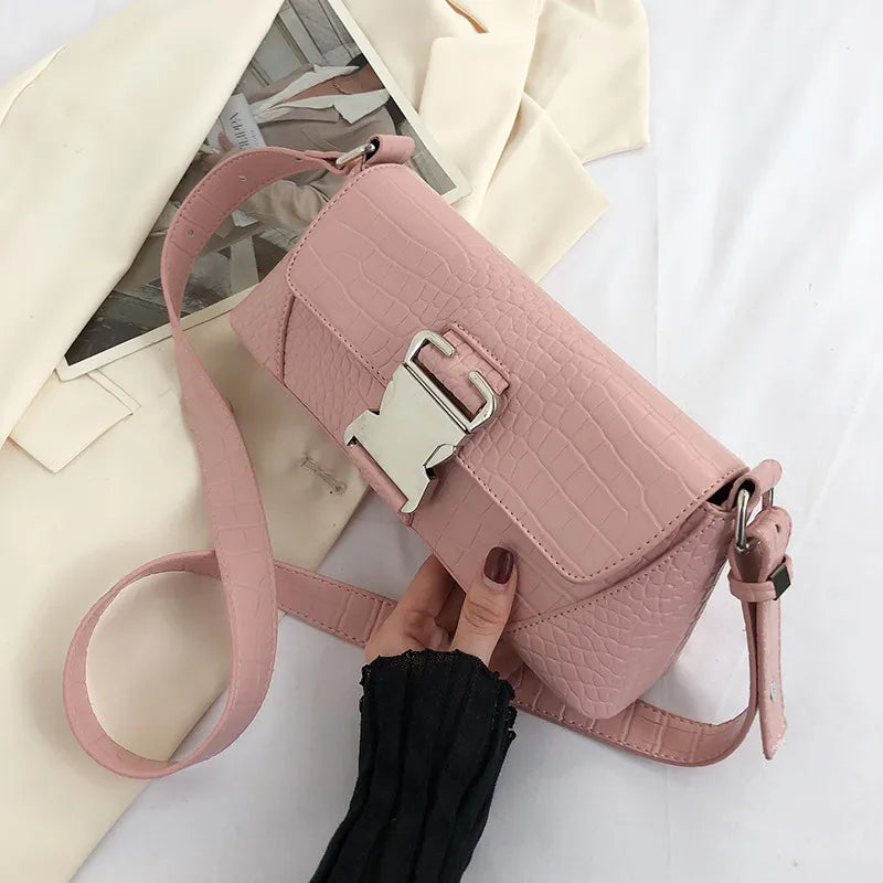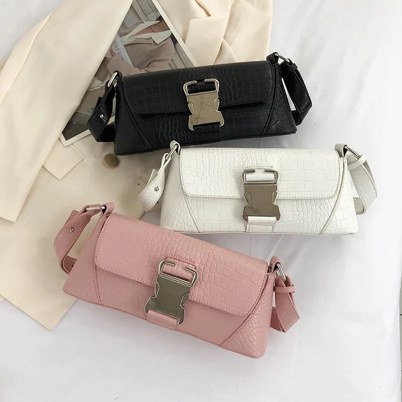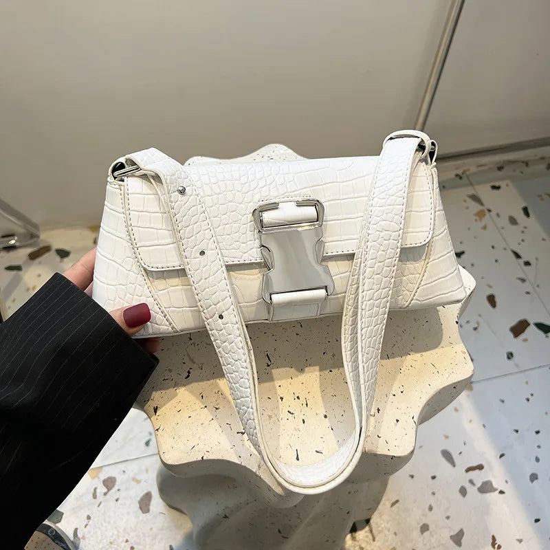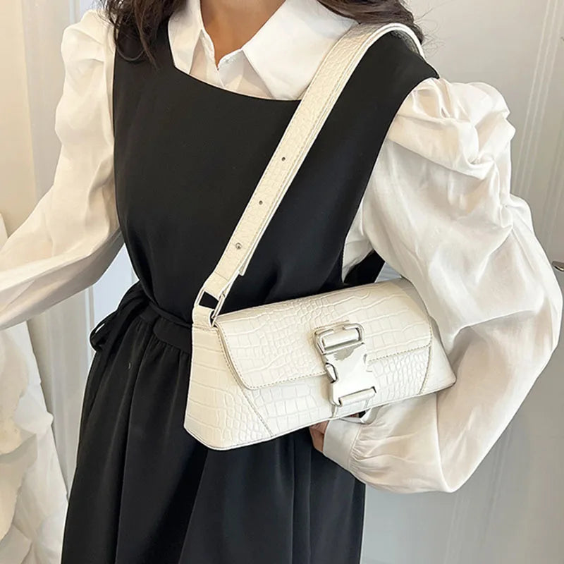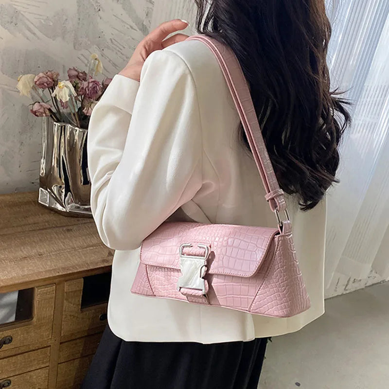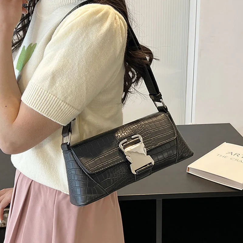 Crocodile Pattern Leather Fashion Crossbody Bag Retro Women's Underarm Single-Shoulder Bags Solid Color Simple Leisure Satchel
