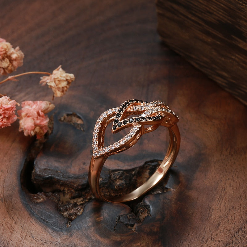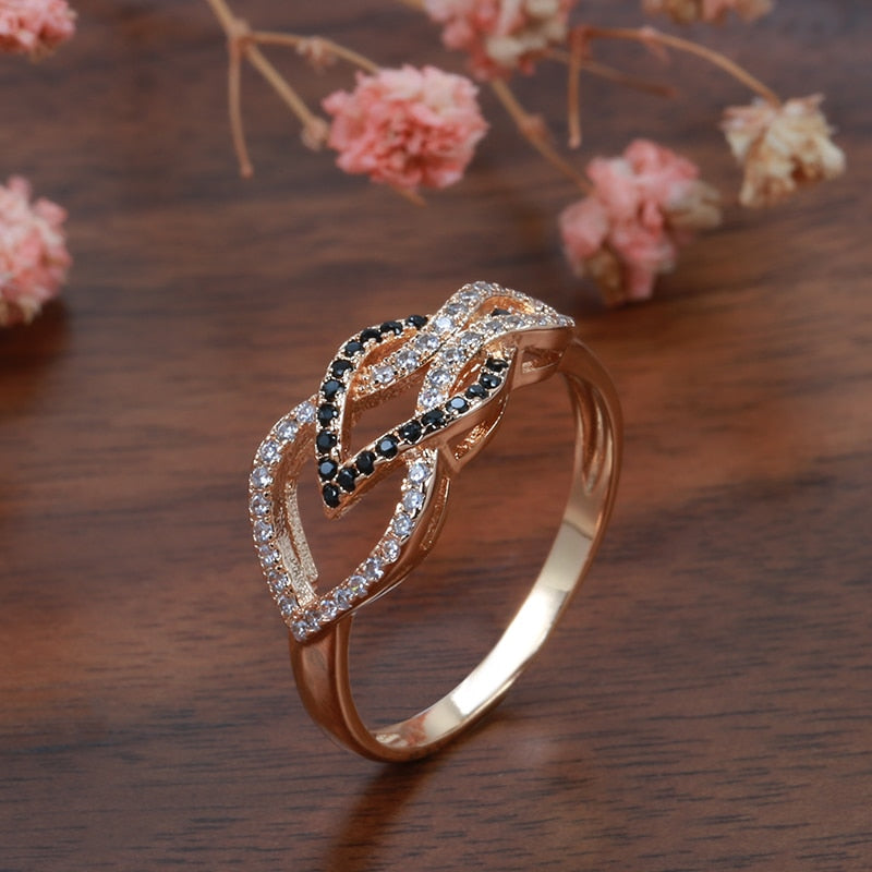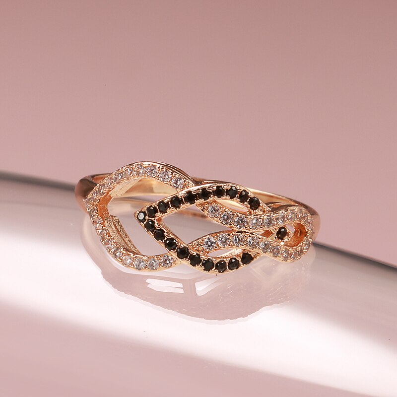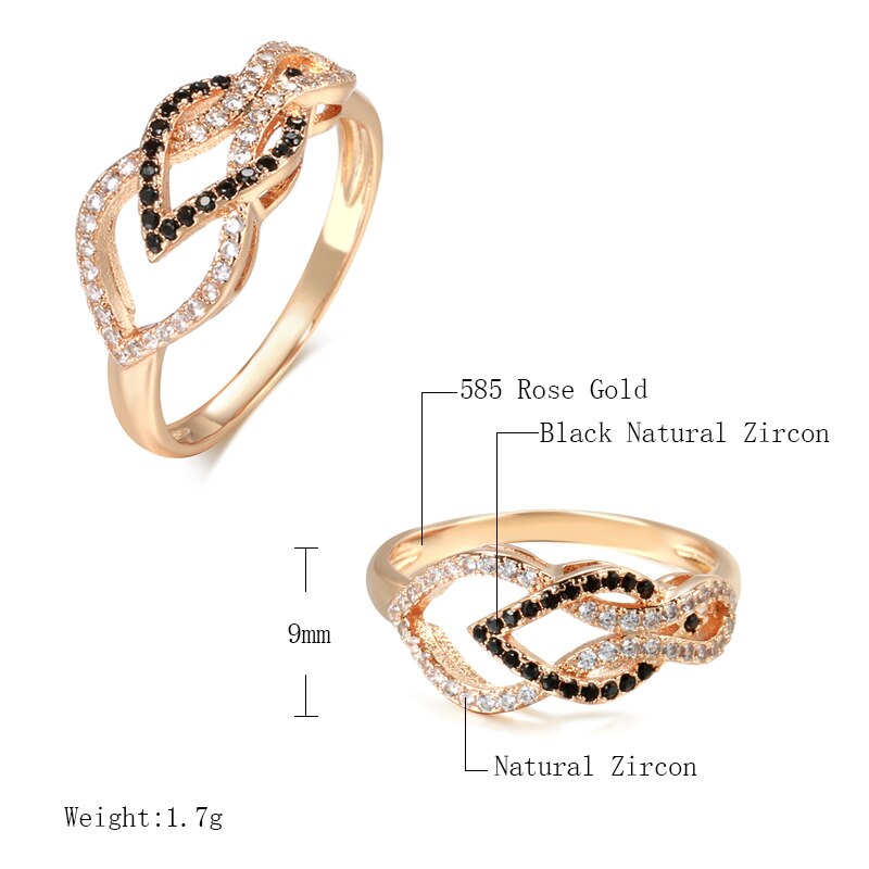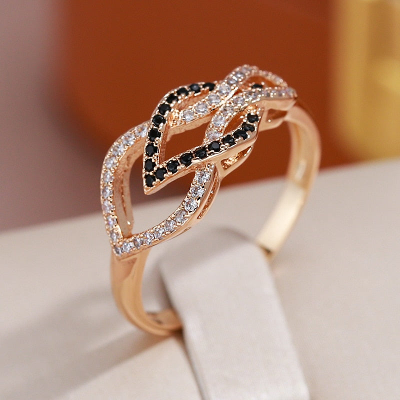 585 Gold Jewelry-Crossing Hollow Full Black White Zircon Women Rings Gold Color Fashion Gothic Jewelry Party Personality Accessories