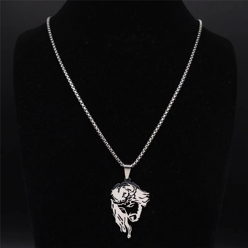 Crucifix Jesus Christ Crown of Thorns Jesus Stainless Steel Necklaces & Pendants Women Silver Color Statement Necklace Jewelry gargantilla
