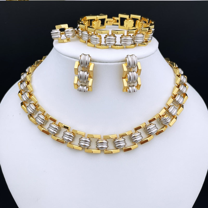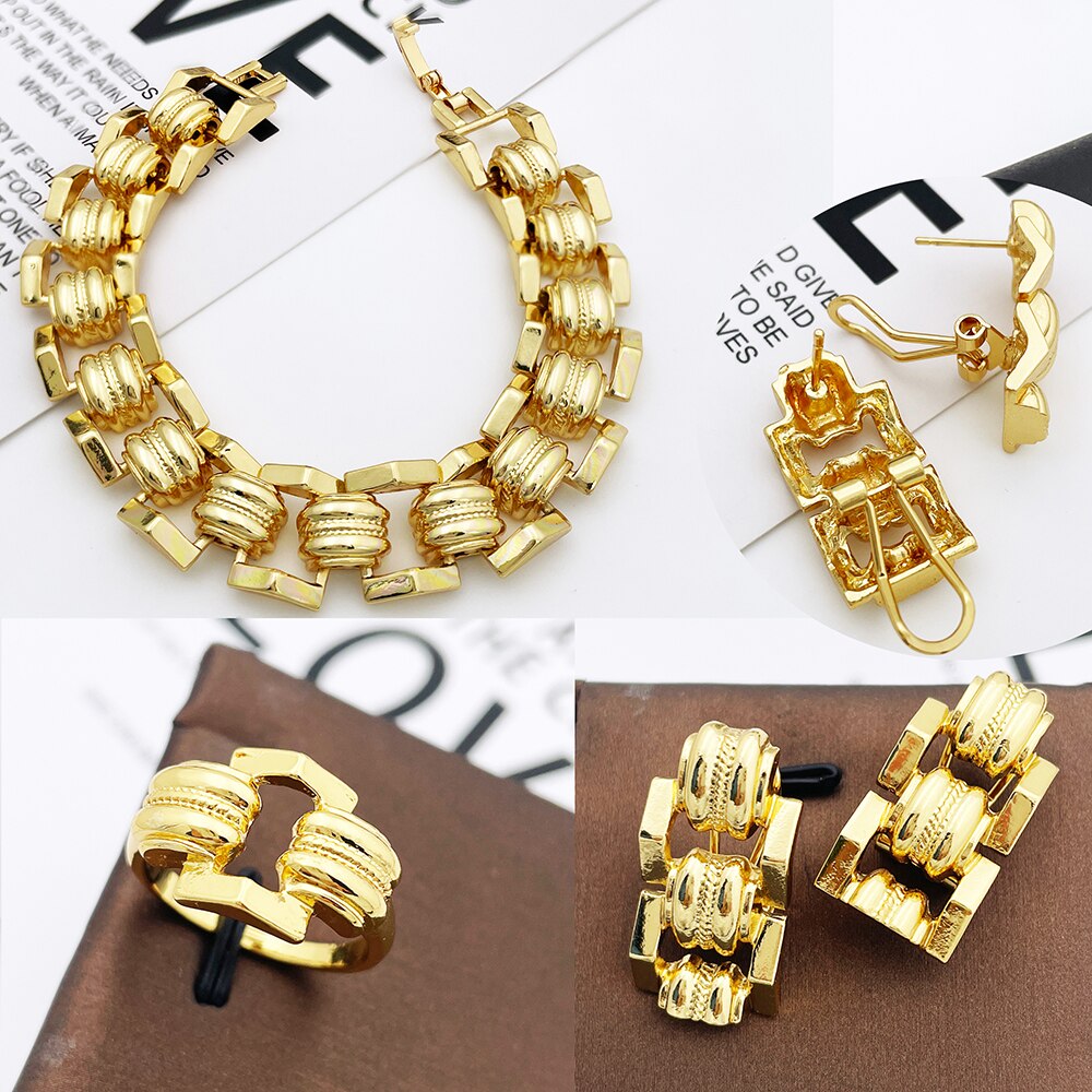 Dubai Gold Color Jewelry Sets Cuban Necklace And Earrings For Women Classic Chain Wedding Party Banquet Jewelry