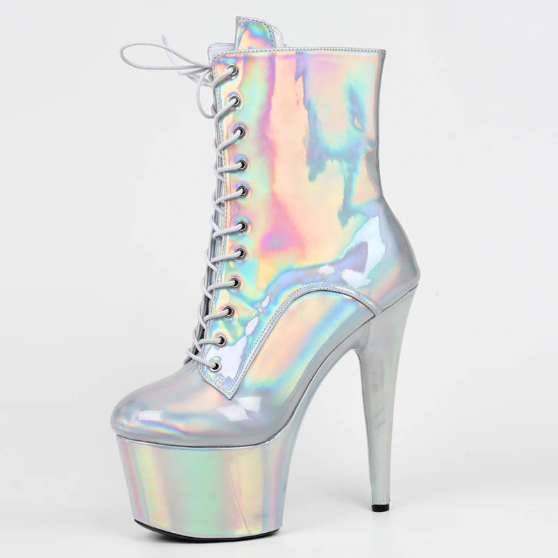 custom 6" Spike Heel Stripper Pole Dance Platform Hologram Women Ankle Boots size36-43