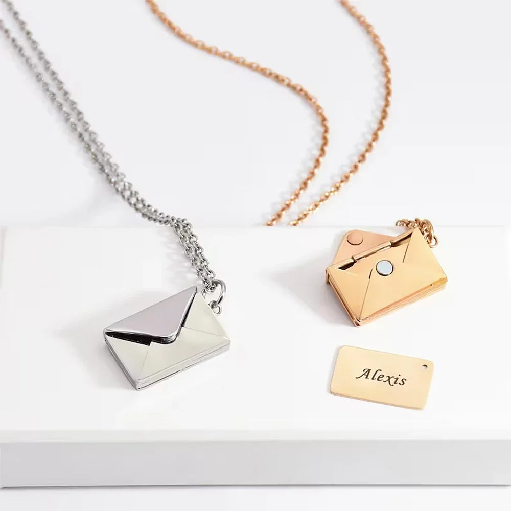 Custom Engraved Love Letter Personalized Envelope Pendant Necklace