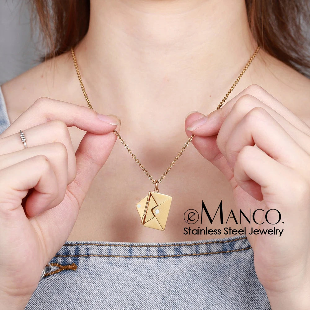 Customized Love Letter Envelope Stainless Steel Pendant Necklace Jewelry Confession You for Valentine Mother Day Gift