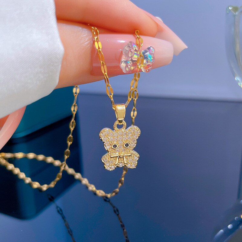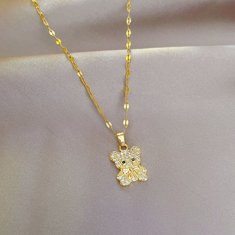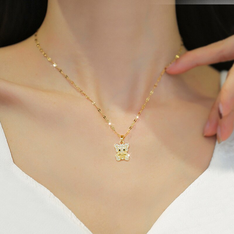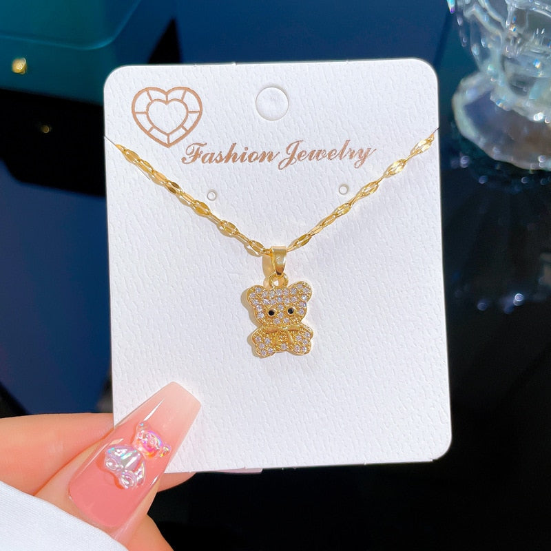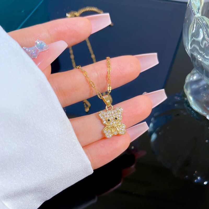 585 Gold Jewelry-Stainless Steel Cute Animal Crystal Bear Pendant Necklace For Women Girl Clavicle Choker Fashion Jewelry Friend Gift Party