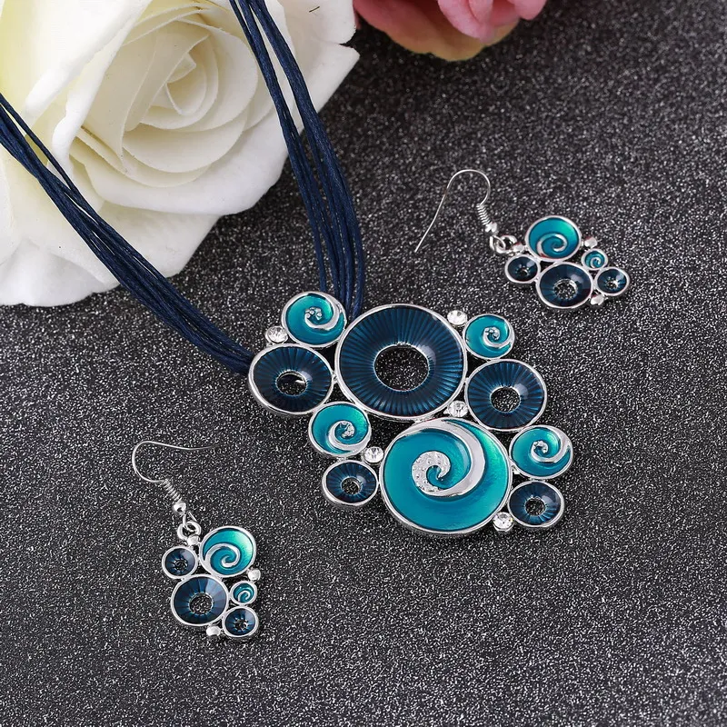 Dark Blue Charming Jewelry Set For Women Special Design Pretty Wedding Jewelry Multi Layers Short Rope Necklace