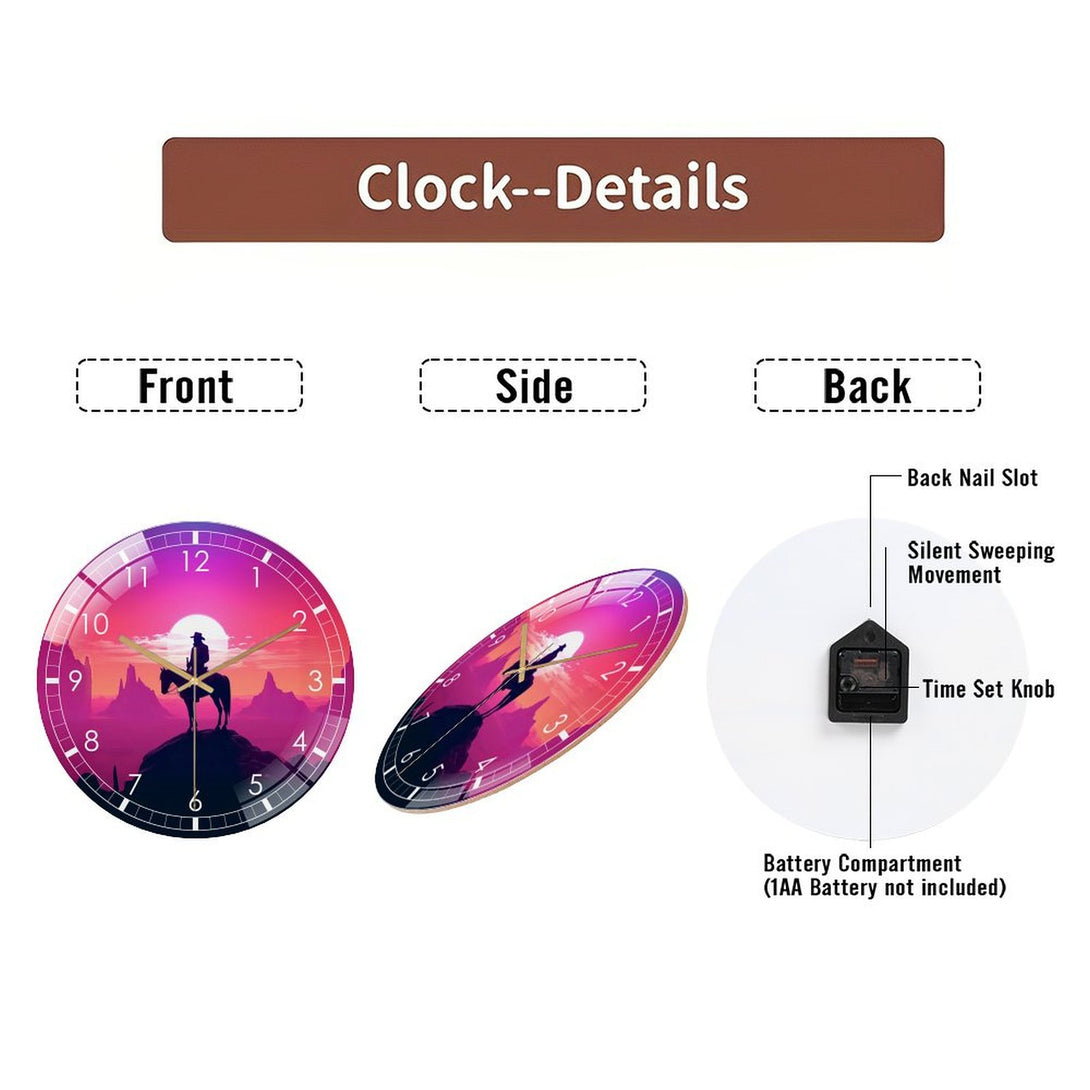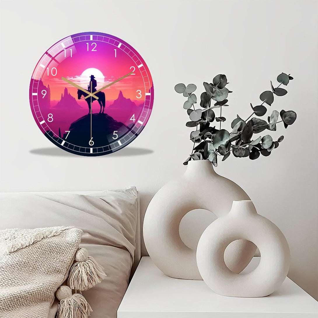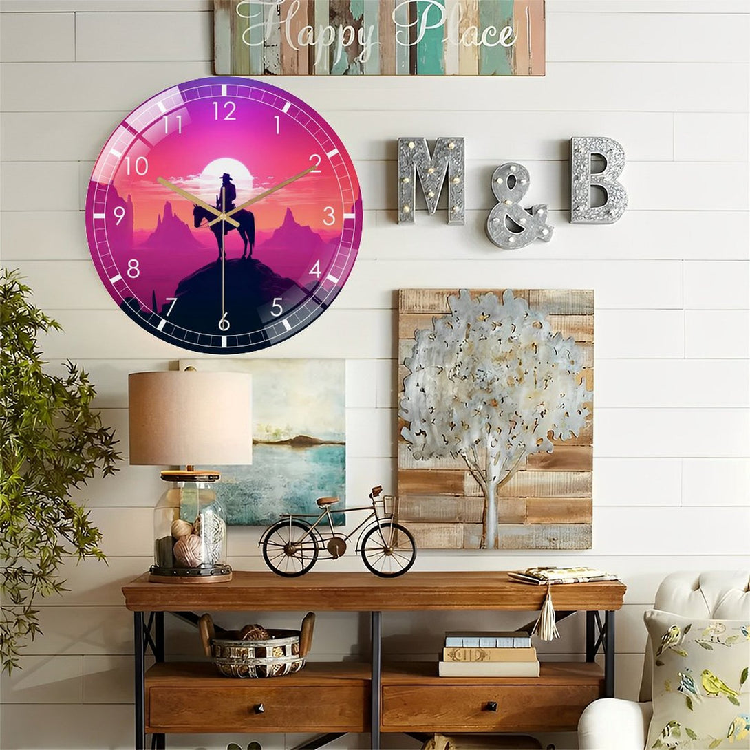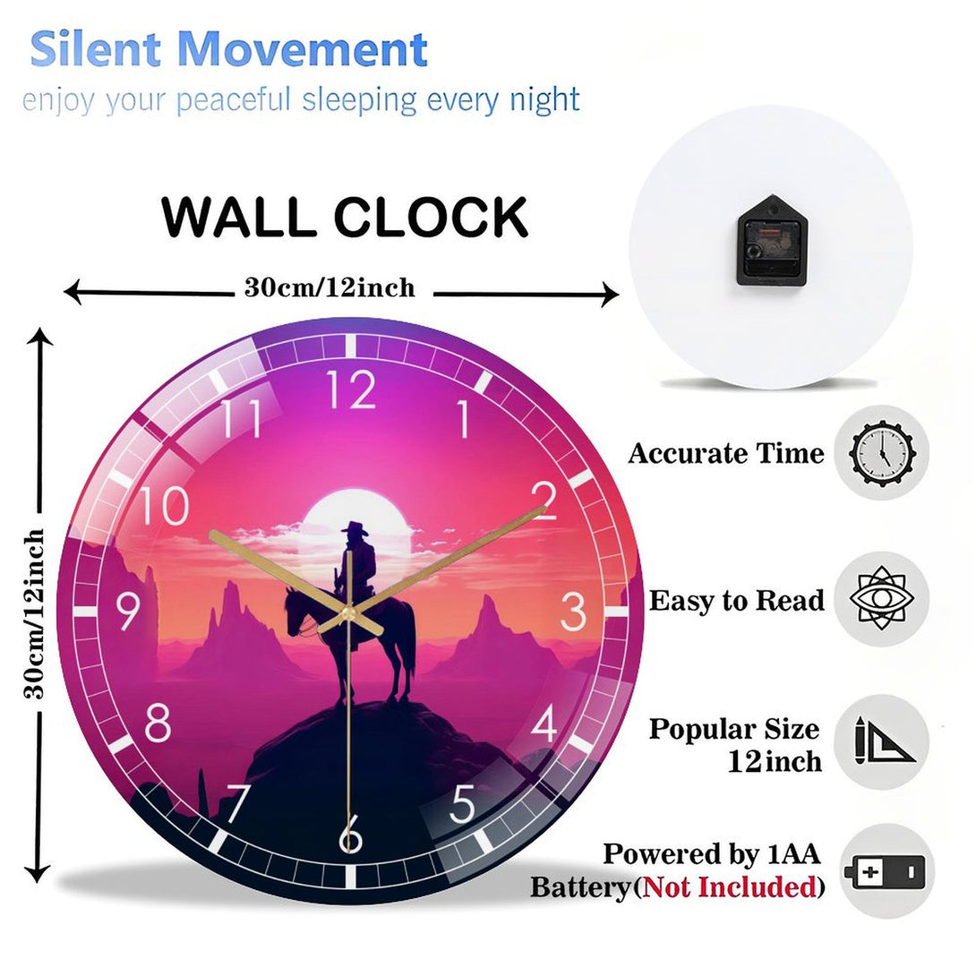 Wild West Sunset Glass Wall Clock, Cowboy Decor Wall Clock for Homes, Bars, Offices, Man Caves, Garages, And Living Rooms .Also Makes A Great Gift.,12×12inch(30×30cm)