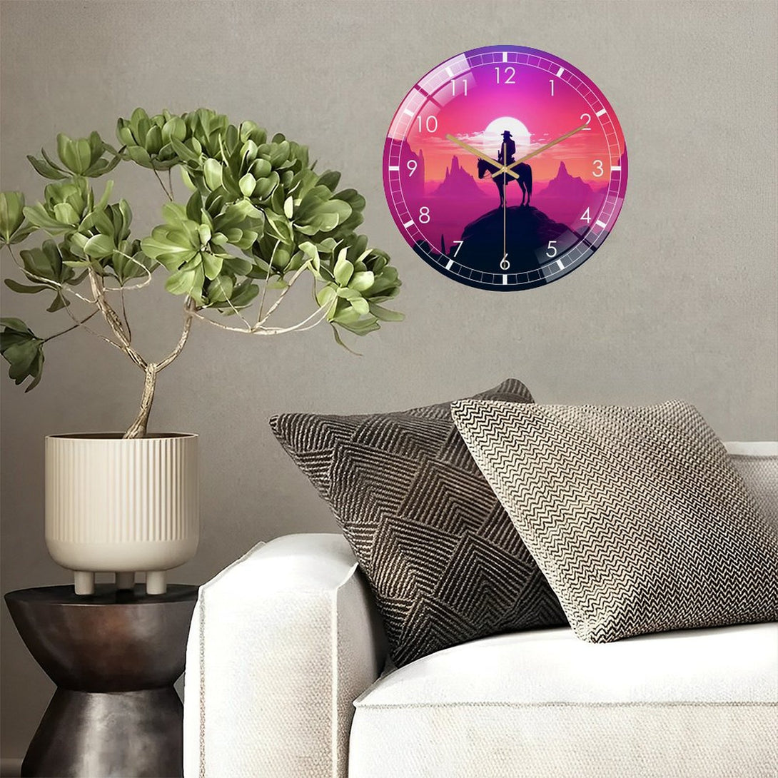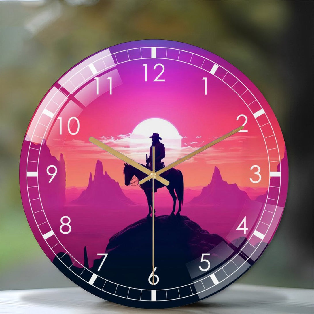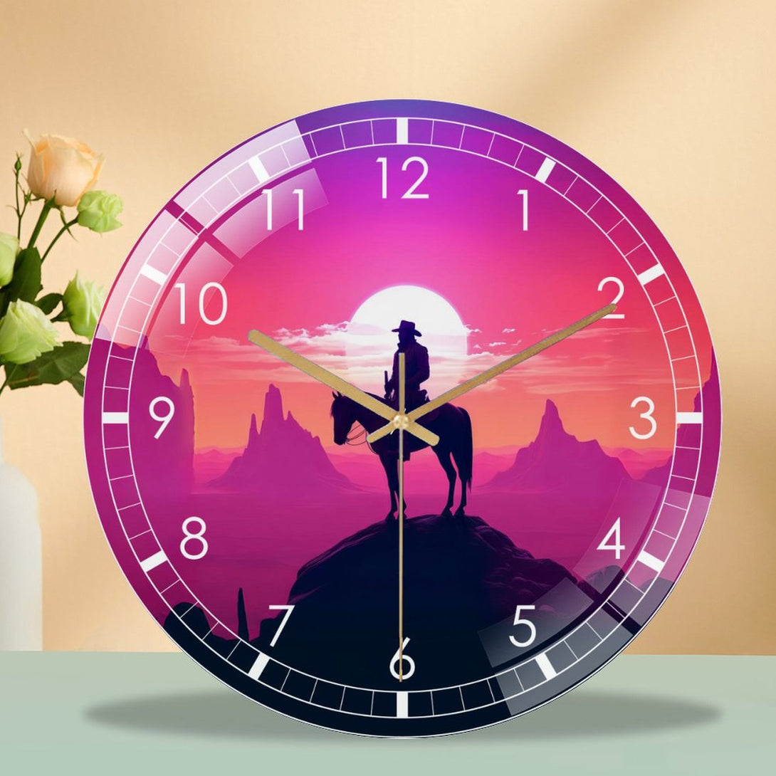 Decor Clocks: Wild West Sunset Glass Wall Clock, Cowboy Decor Wall Clock for Homes, Bars, Offices, Man Caves, Garages, And Living Rooms .Also Makes A Great Gift. Style 12×12inch(30×30cm)