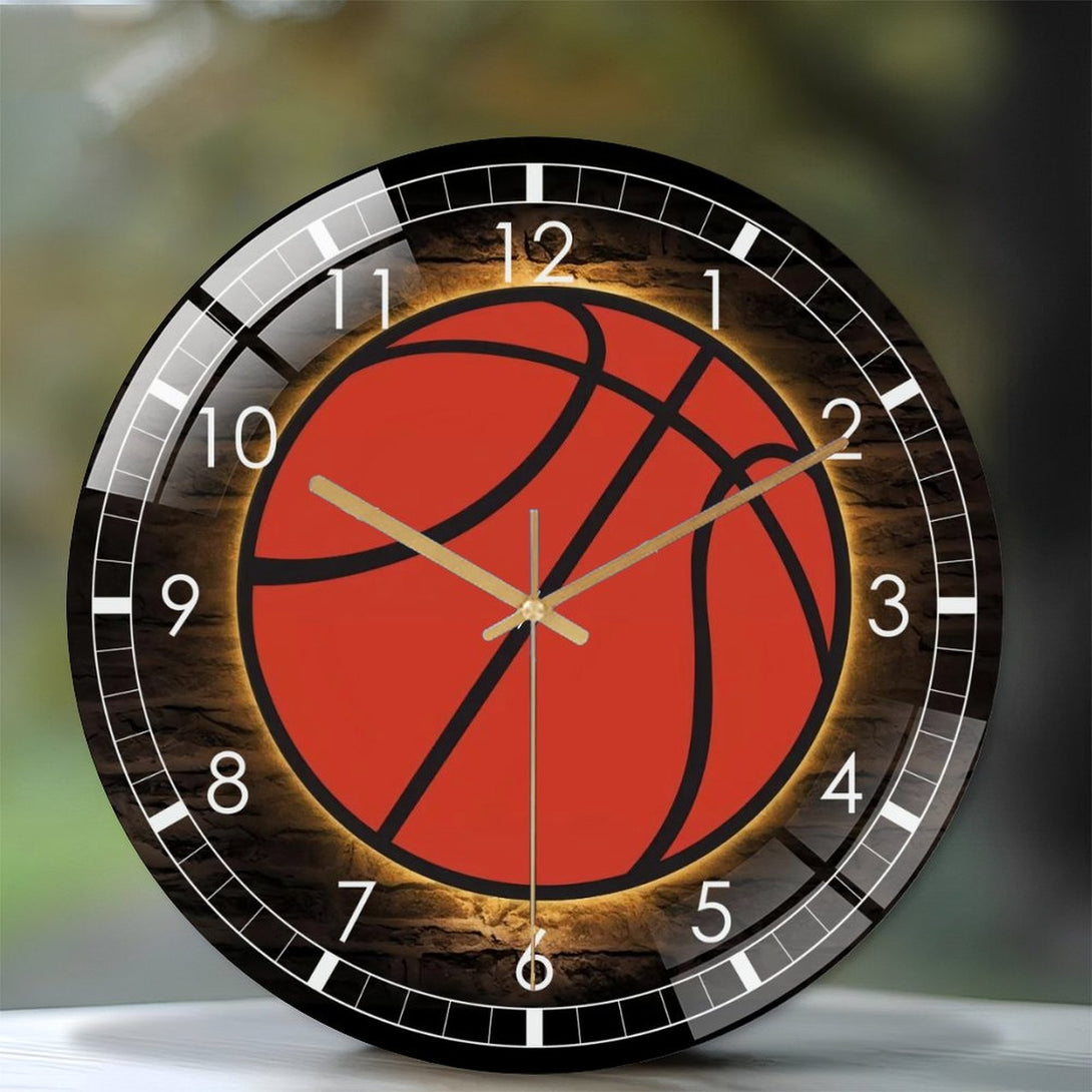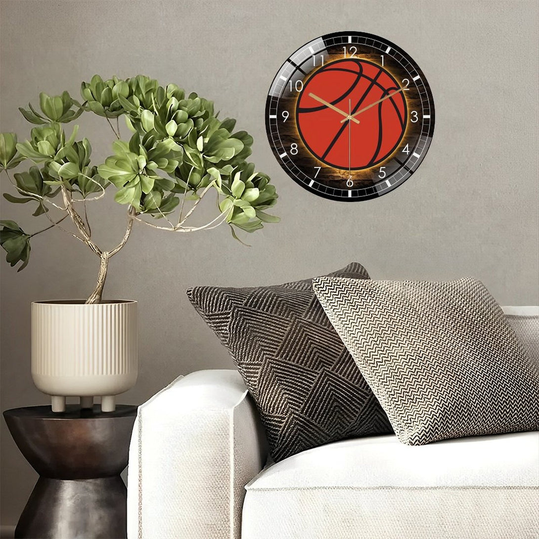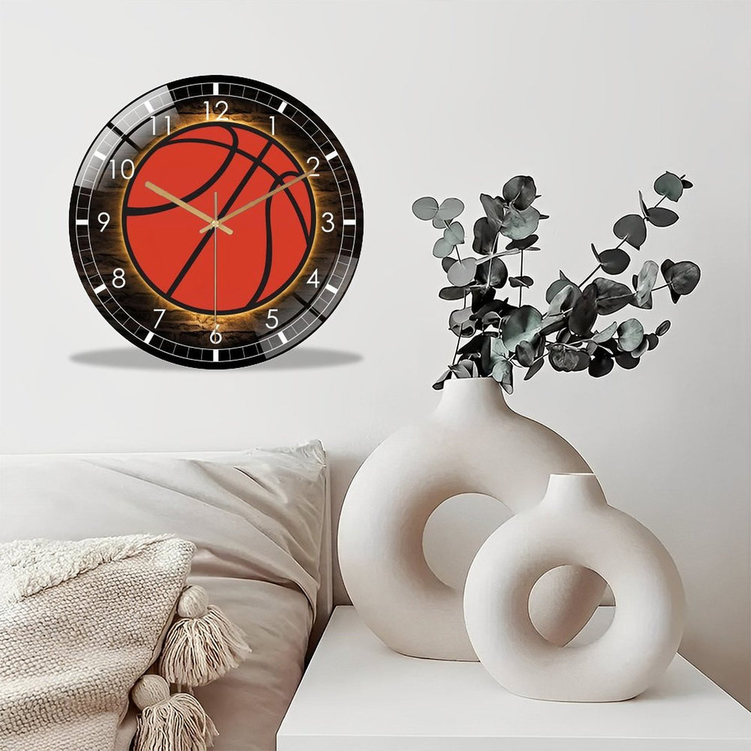 Basketball Wall Art Glass Wall Clock , Player Decor Wall Clock for Home Decor, Christmas Gift for Bedroom, Game Room, Man Cave, Party Decor, Mother's Father's Christmas Birthday.,12×12inch(30×30cm)