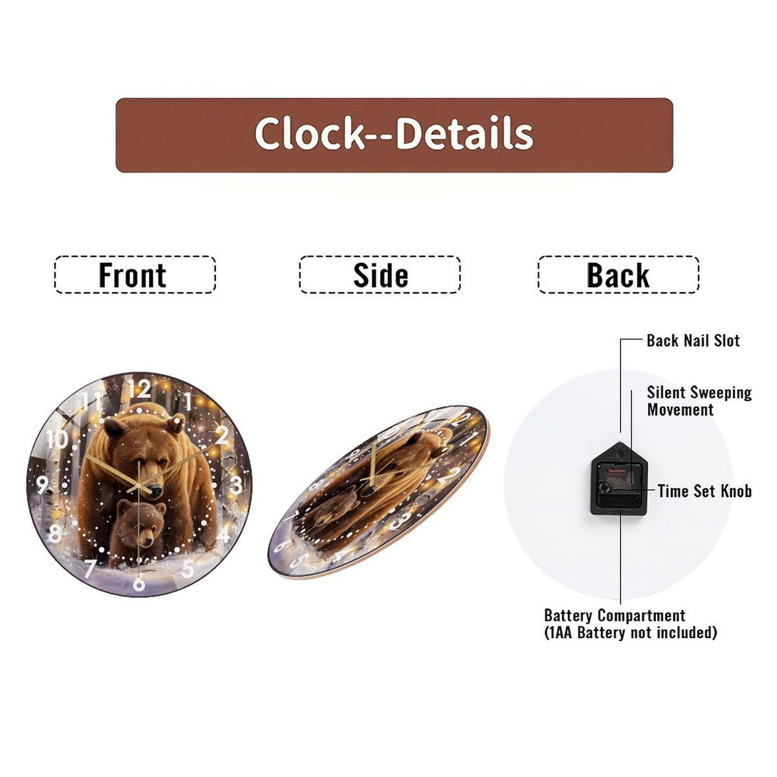 Decor Wall Clock: Bear And Cub Glass Wall Clock, Winter Cute Bear Christmas Wall Clock for Homes, Bars, Offices, Man Caves, Garages, And Living Rooms .Also Makes A Great Gift.