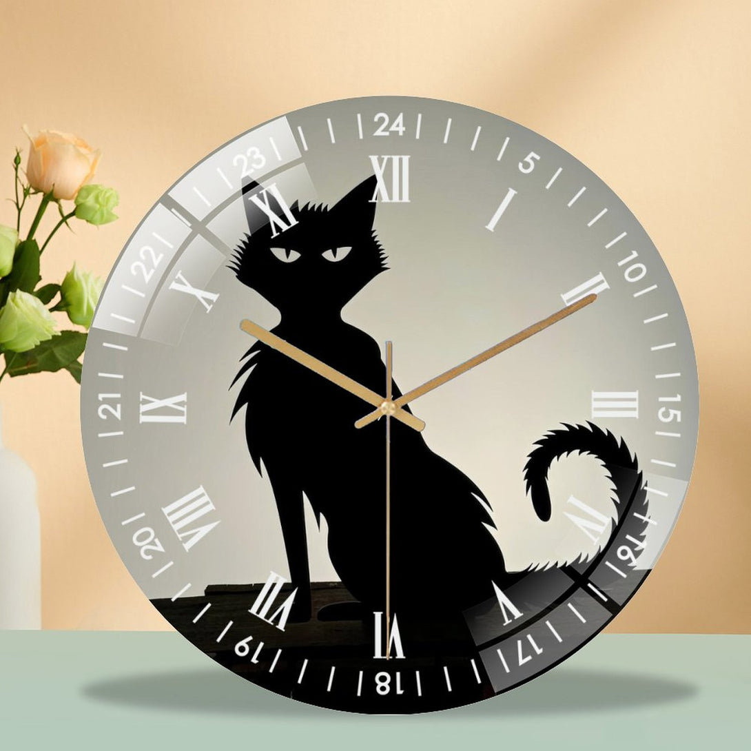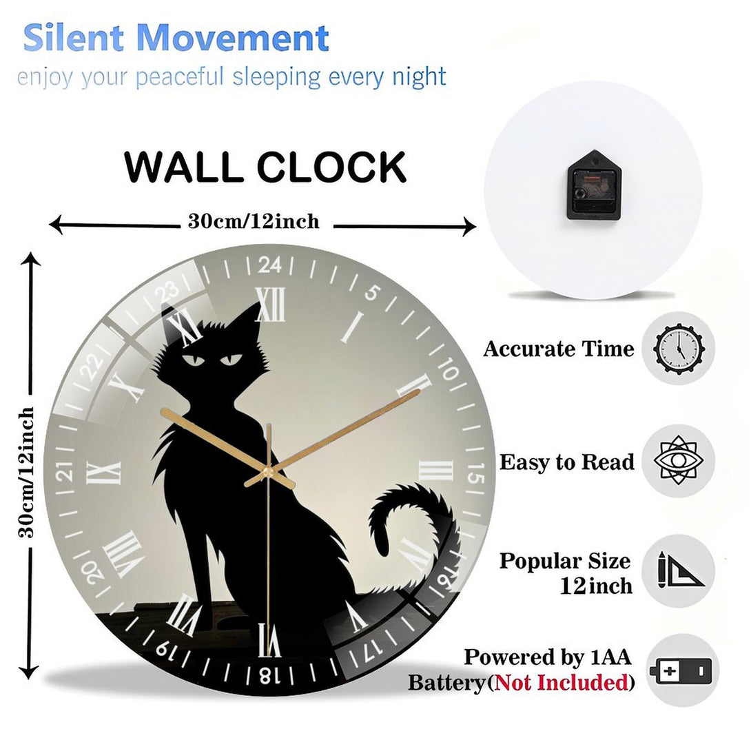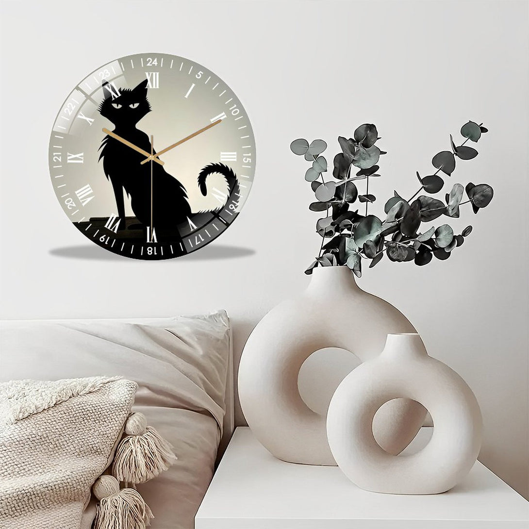Black Cat Glass Wall Clock, Halloween- Cat Love Decor Wall Clock for Homes, Bars, Offices, Man Caves, Garages, And Living Rooms .Also Makes A Great Gift.,12×12inch(30×30cm)
