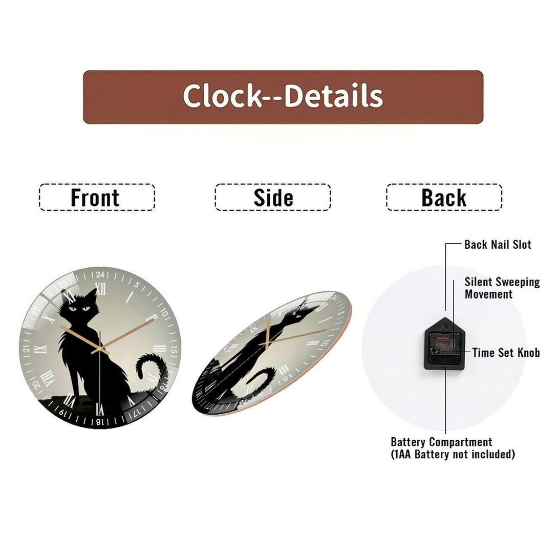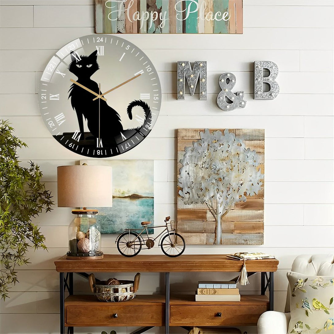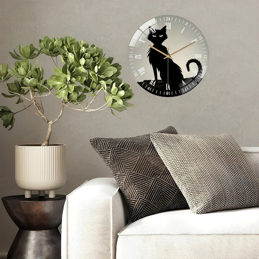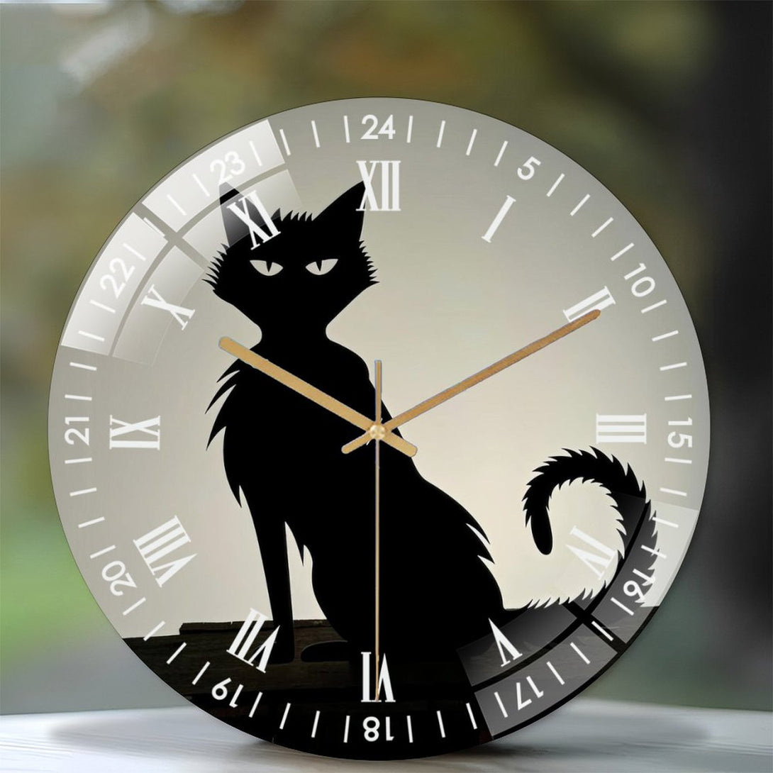 Black Cat Glass Wall Clock, Halloween- Cat Love Decor Wall Clock for Homes, Bars, Offices, Man Caves, Garages, And Living Rooms .Also Makes A Great Gift.,12×12inch(30×30cm)