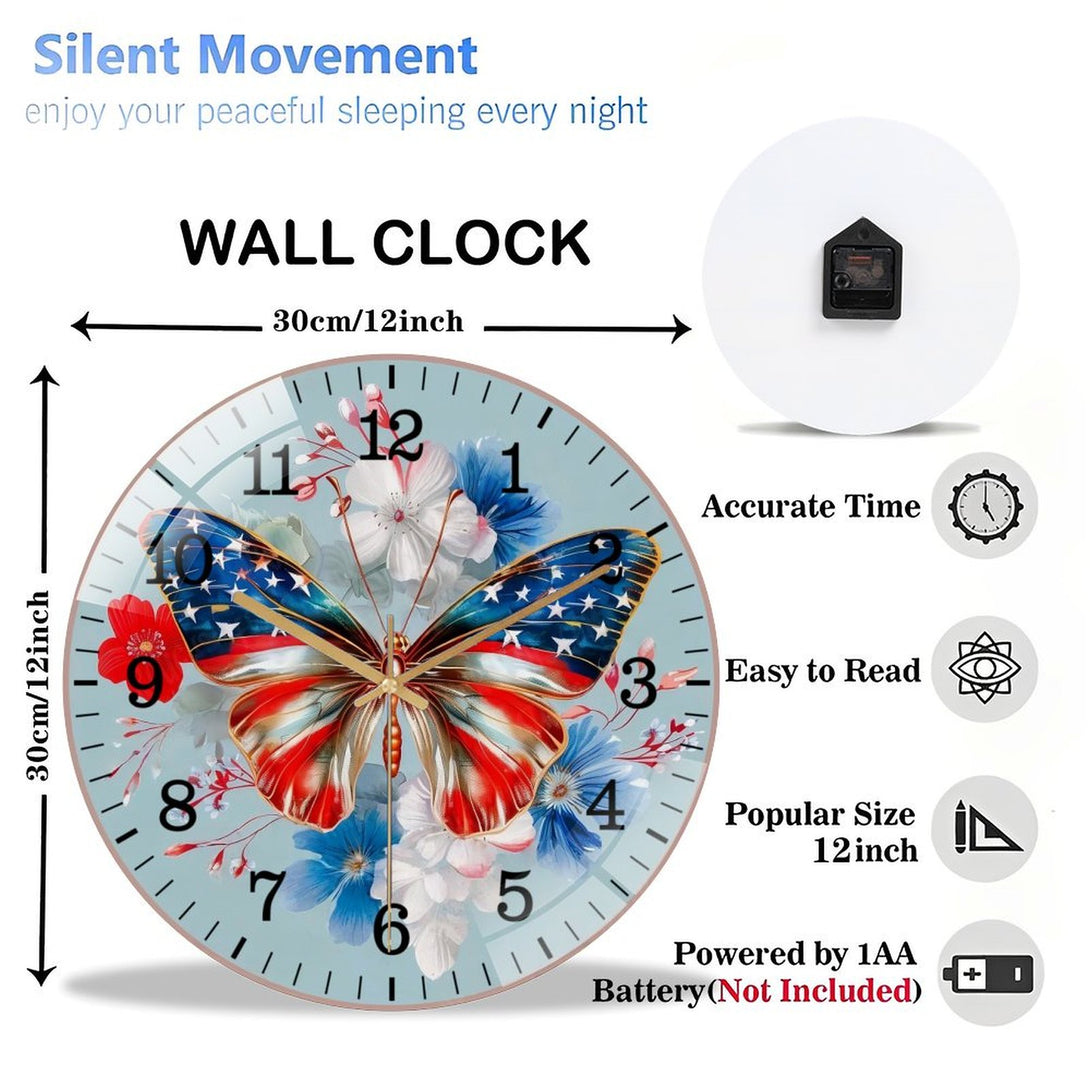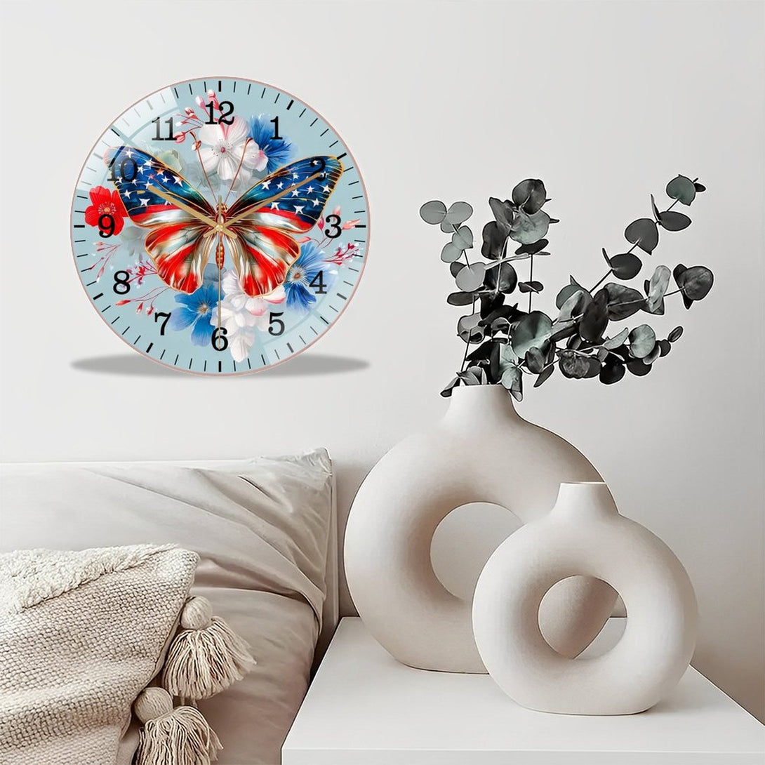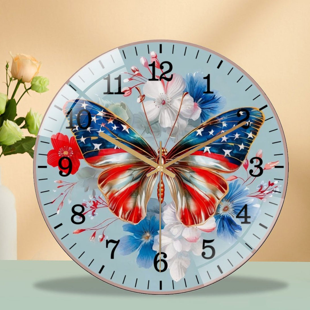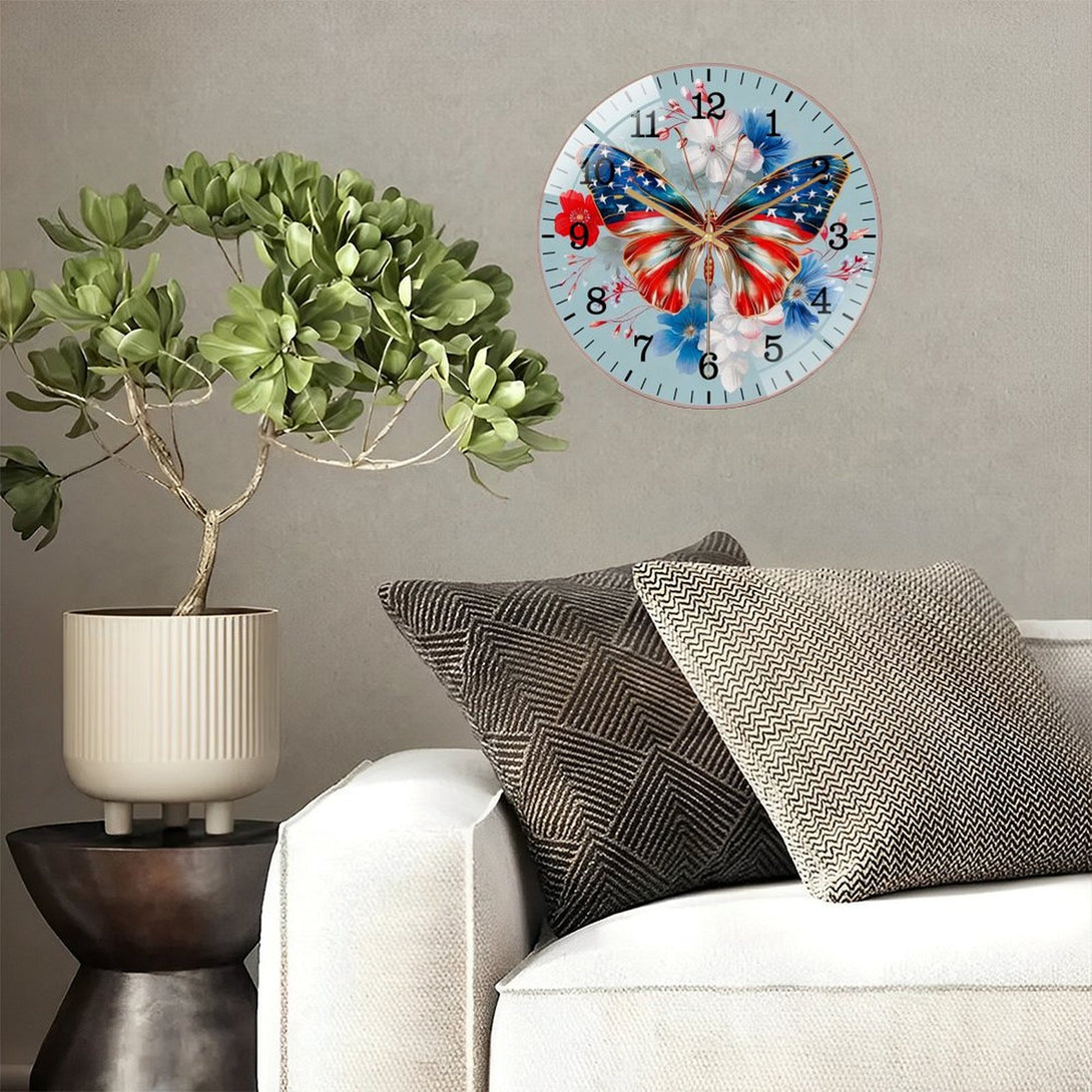 Butterfly Welcome Glass Wall Clock,Butterfly Patriotic American Flag Decor Wall Clock for Homes, Bars, Offices, Man Caves, Garages, And Living Rooms .Also Makes A Great Gift.,12×12inch(30×30cm)