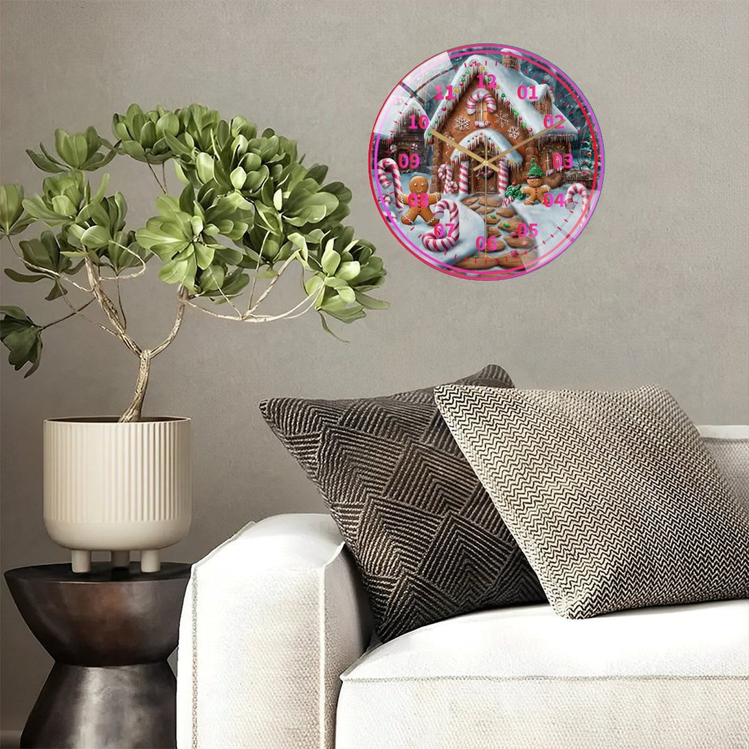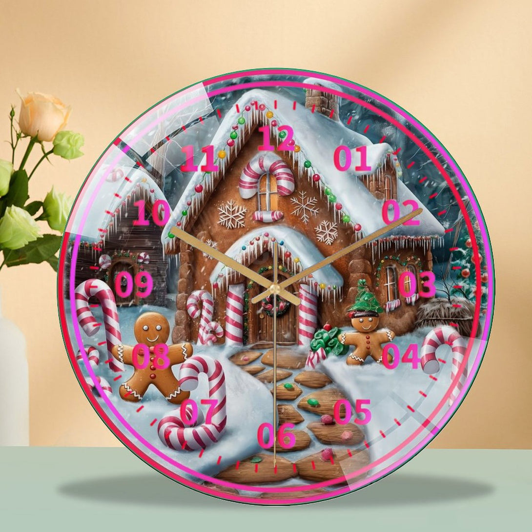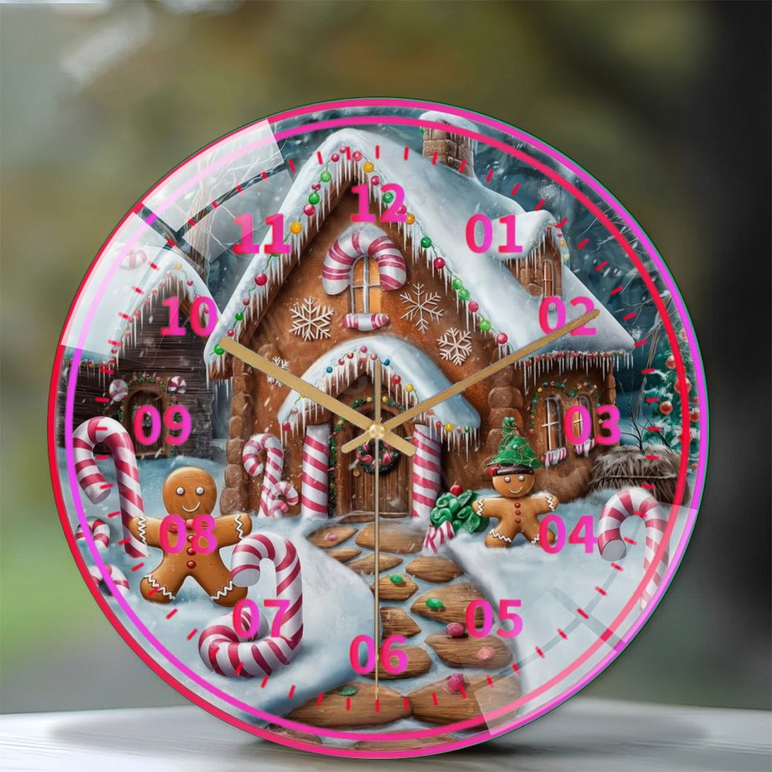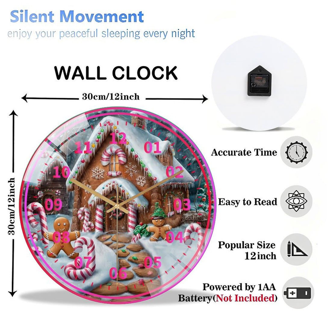 Candy Cane Gingerbread Peppermint Glass Wall Clock, Candy Cane Christmas Wall Clock for Homes, Bars, Offices, Man Caves, Garages, And Living Rooms .Also Makes A Great Gift.,12×12inch(30×30cm)