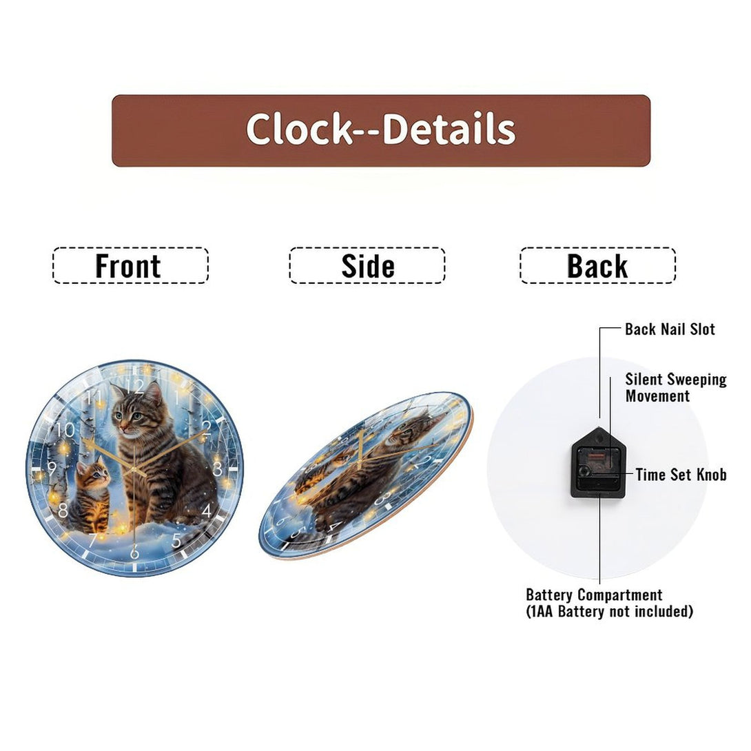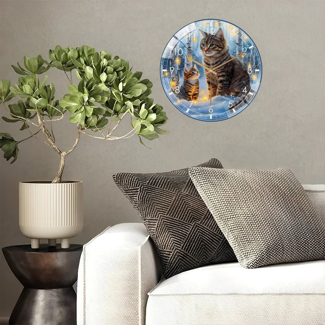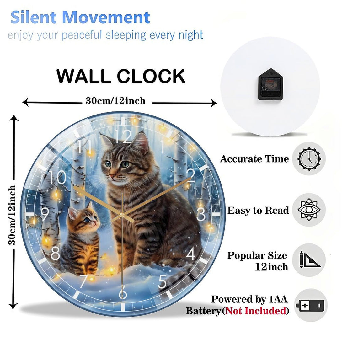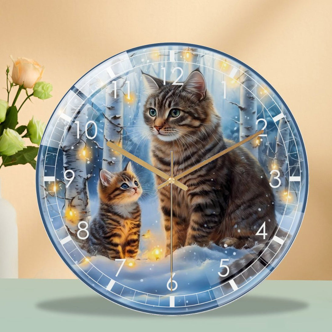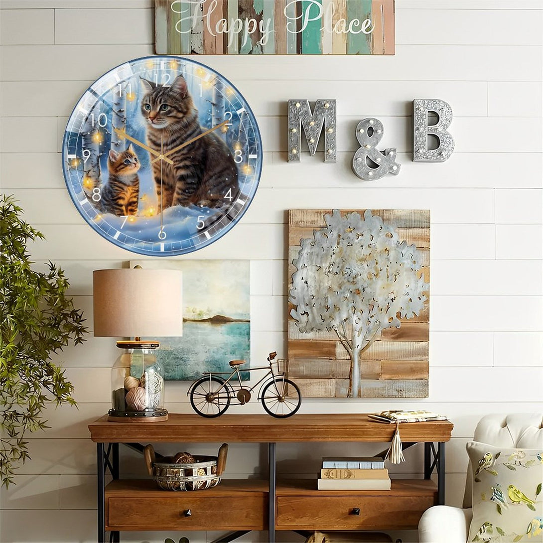 Decor Wall Clock: Cat And Kitten Glass Wall Clock, Cute Cat Christmas Wall Clock for Homes, Bars, Offices, Man Caves, Garages, And Living Rooms .Also Makes A Great Gift. Style 12×12inch(30×30cm)