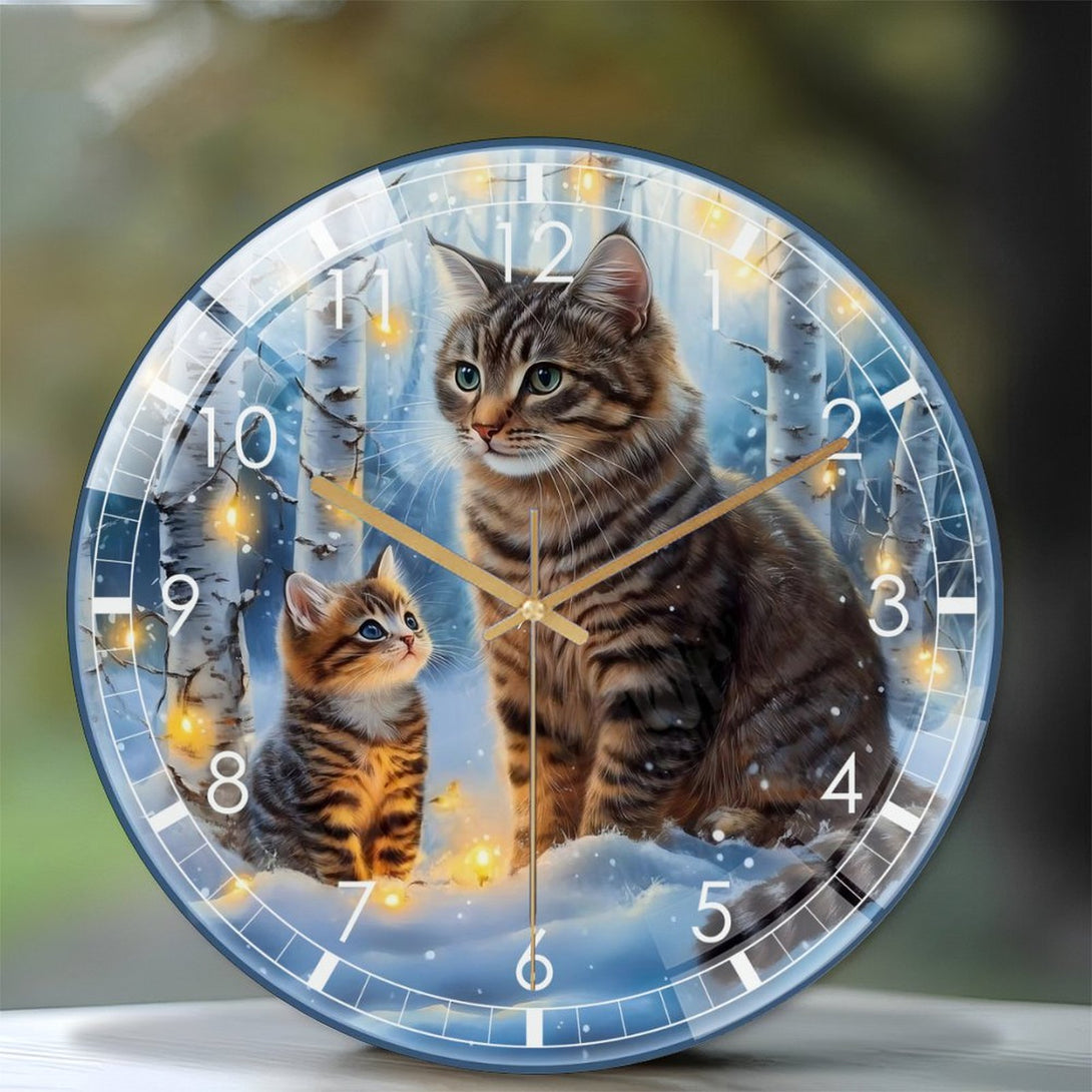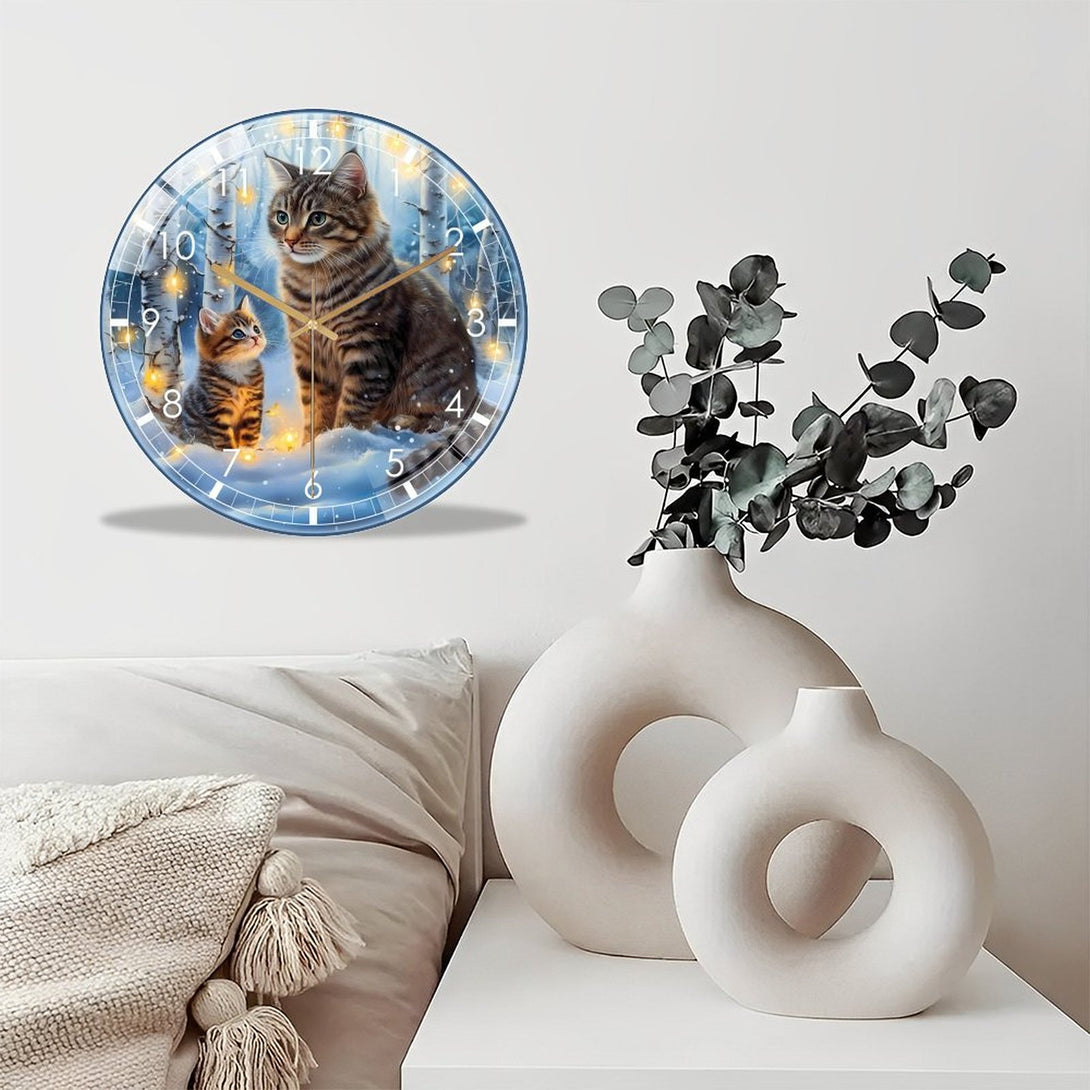 Cat And Kitten Glass Wall Clock, Cute Cat Christmas Wall Clock for Homes, Bars, Offices, Man Caves, Garages, And Living Rooms .Also Makes A Great Gift.,12×12inch(30×30cm)