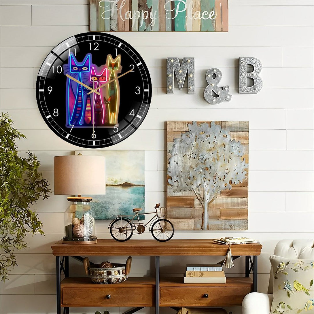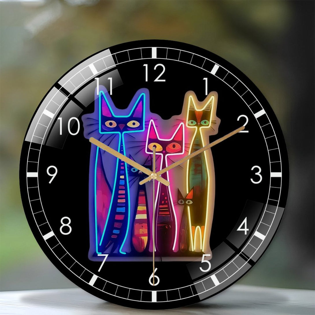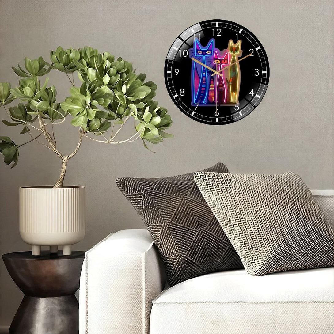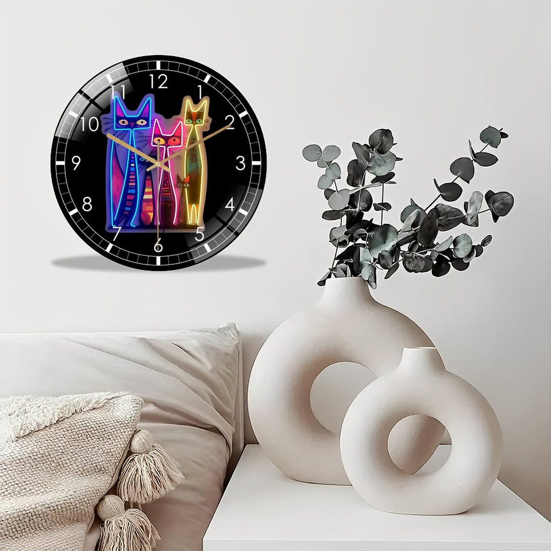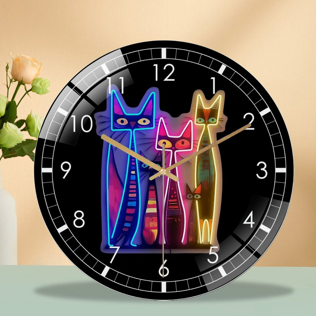 Decor Wall Clock: Cat Family Glass Wall Clock,Abstract Cats Print Artwork Wall Clock for Homes, Bars, Offices, Man Caves, Garages, And Living Rooms .Also Makes A Great Gift.cat Lover Gifts,