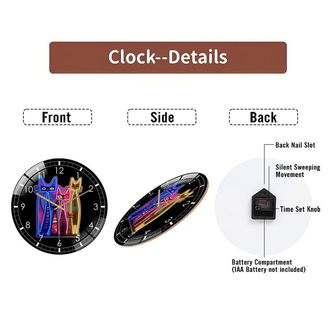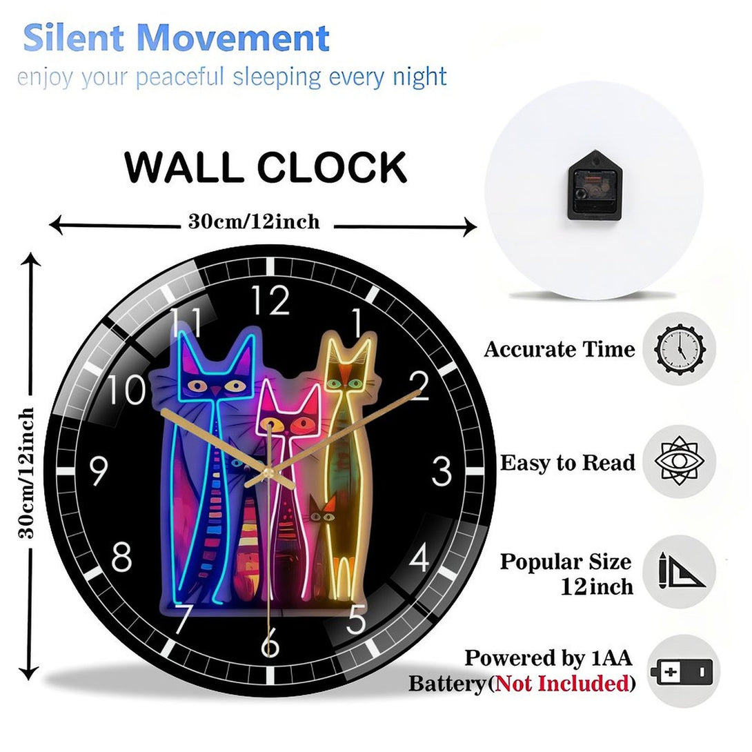 Cat Family Glass Wall Clock,Abstract Cats Print Artwork Wall Clock for Homes, Bars, Offices, Man Caves, Garages, And Living Rooms .Also Makes A Great Gift.cat Lover Gifts, Cat Wall Decor,12×12inch(30×30cm)